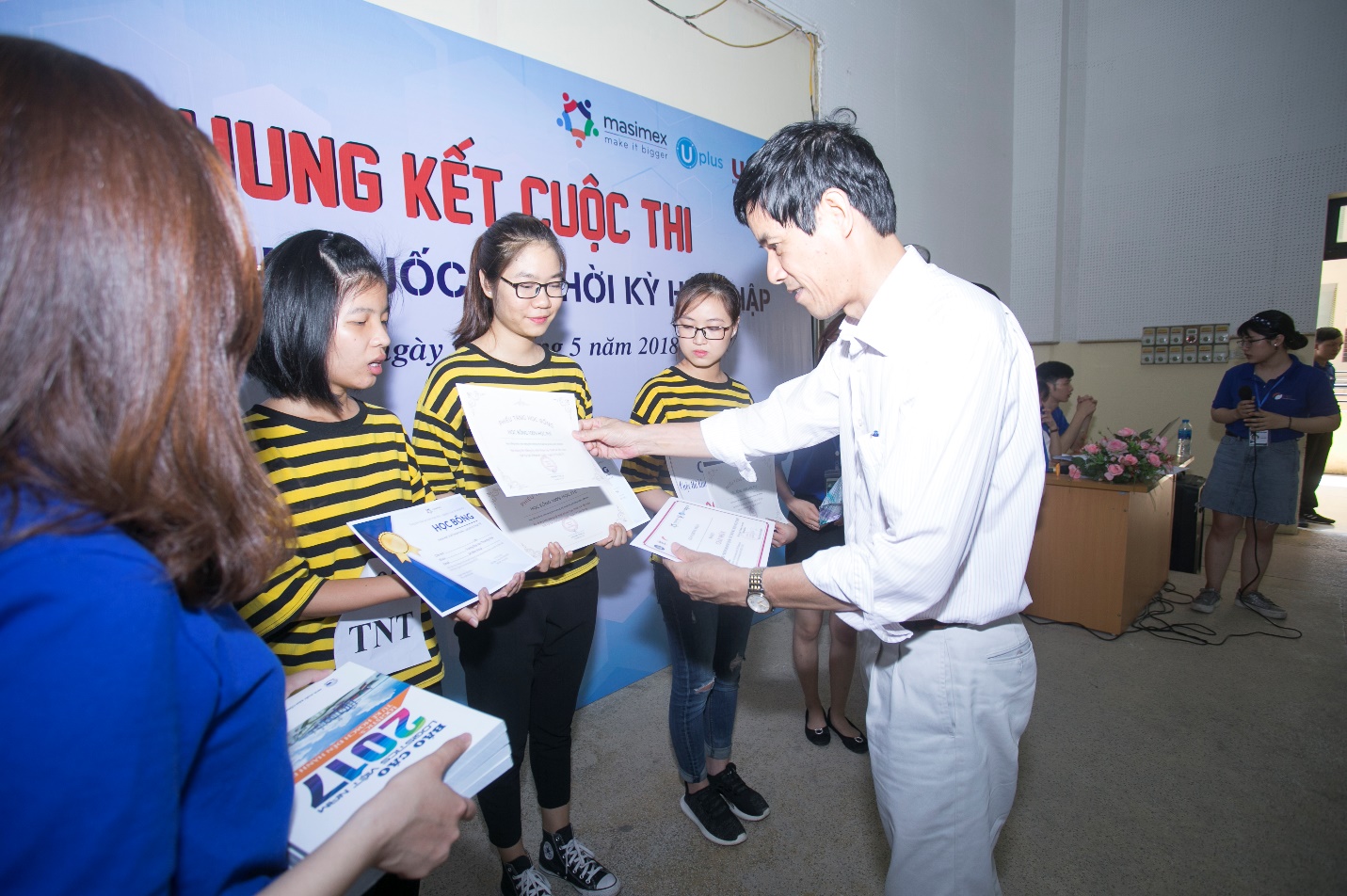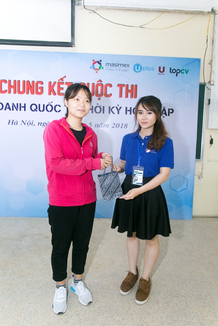 Không chỉ các thí sinh, rất nhiều các bạn sinh viên đã nhận được những phần quà đến từ Nhà tài trợ Trung tâm đào tạo Xuất Nhập Khẩu – Logistics Masimex thông qua phần thi giành cho khán giả.