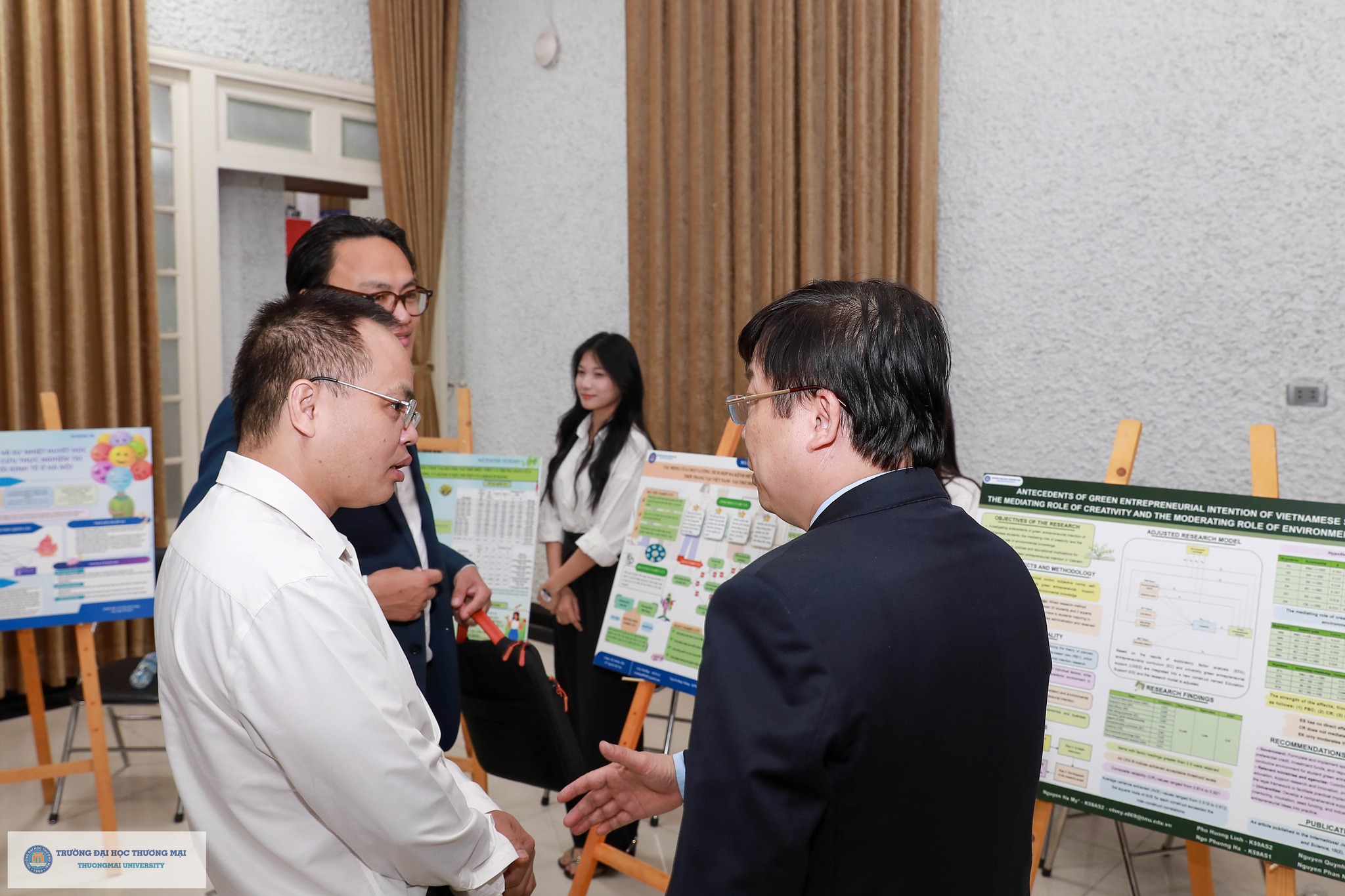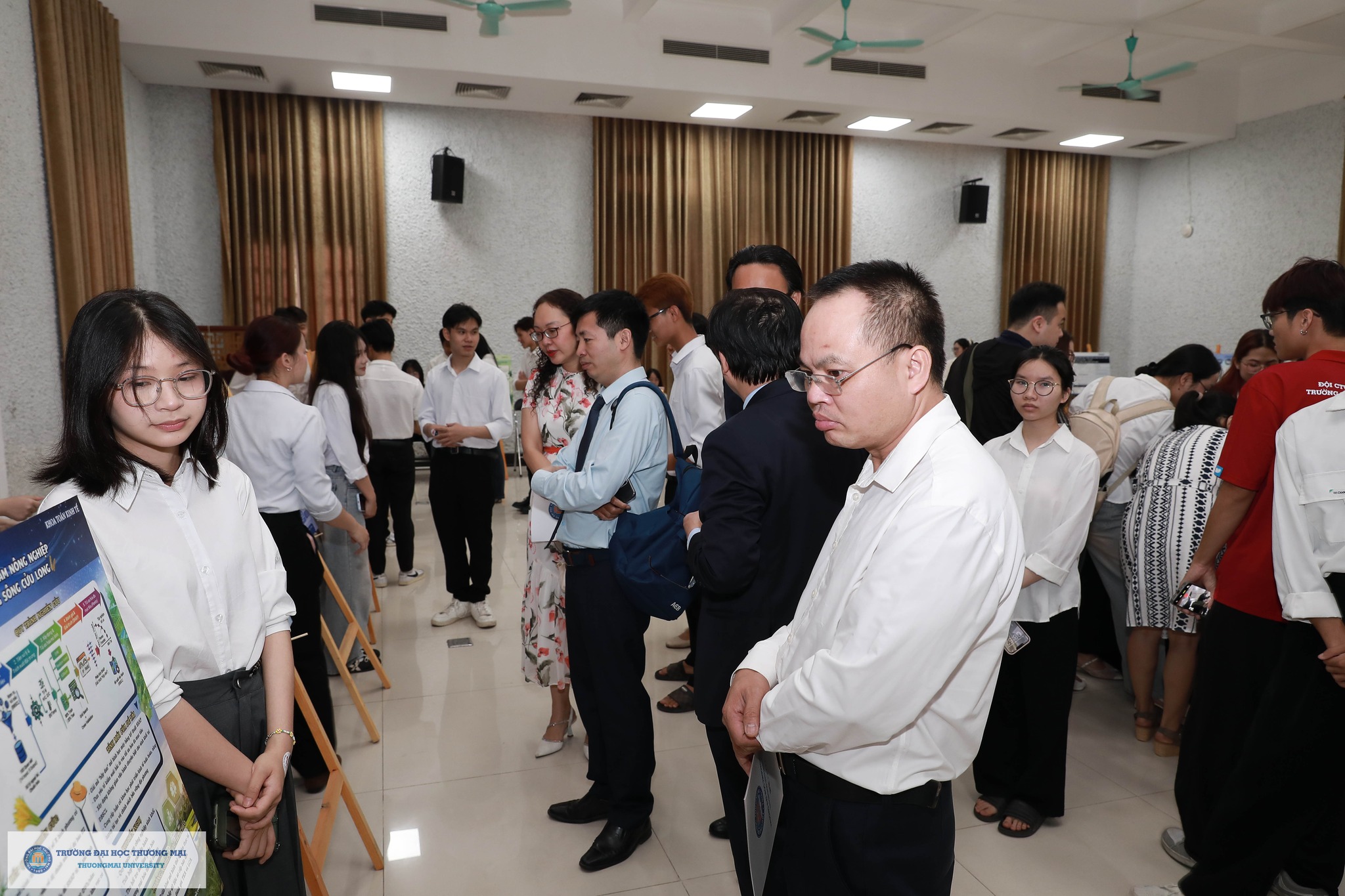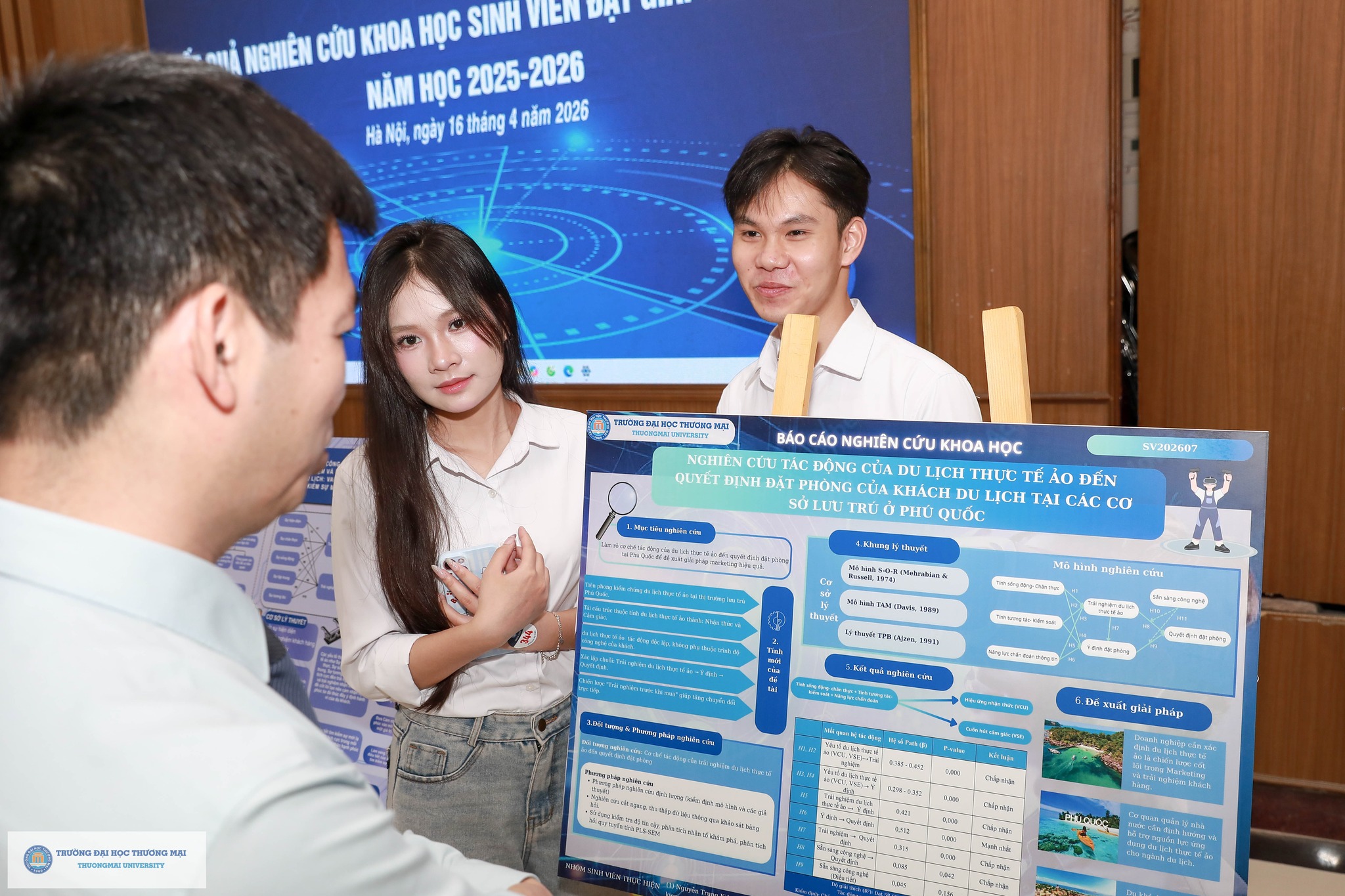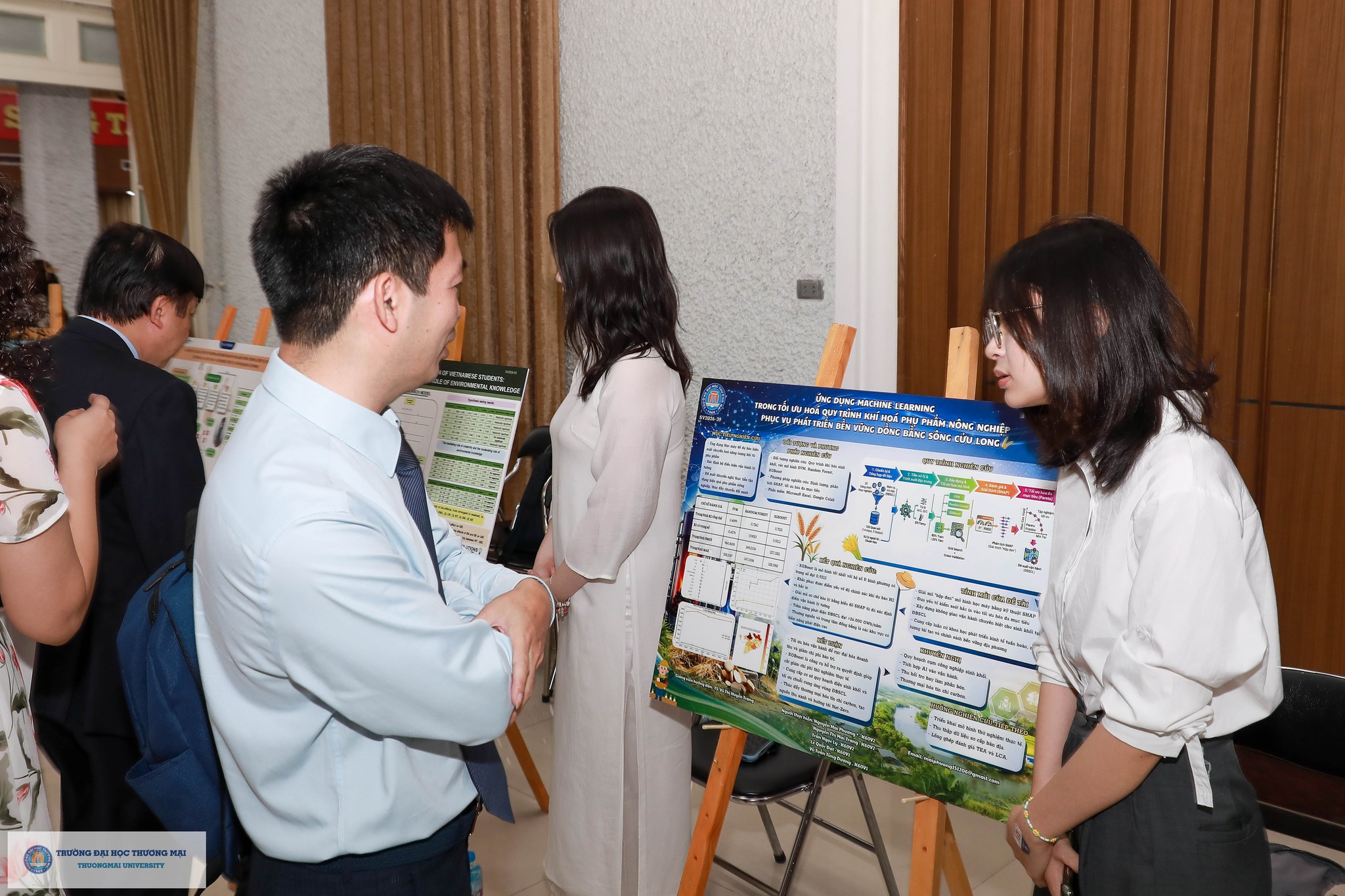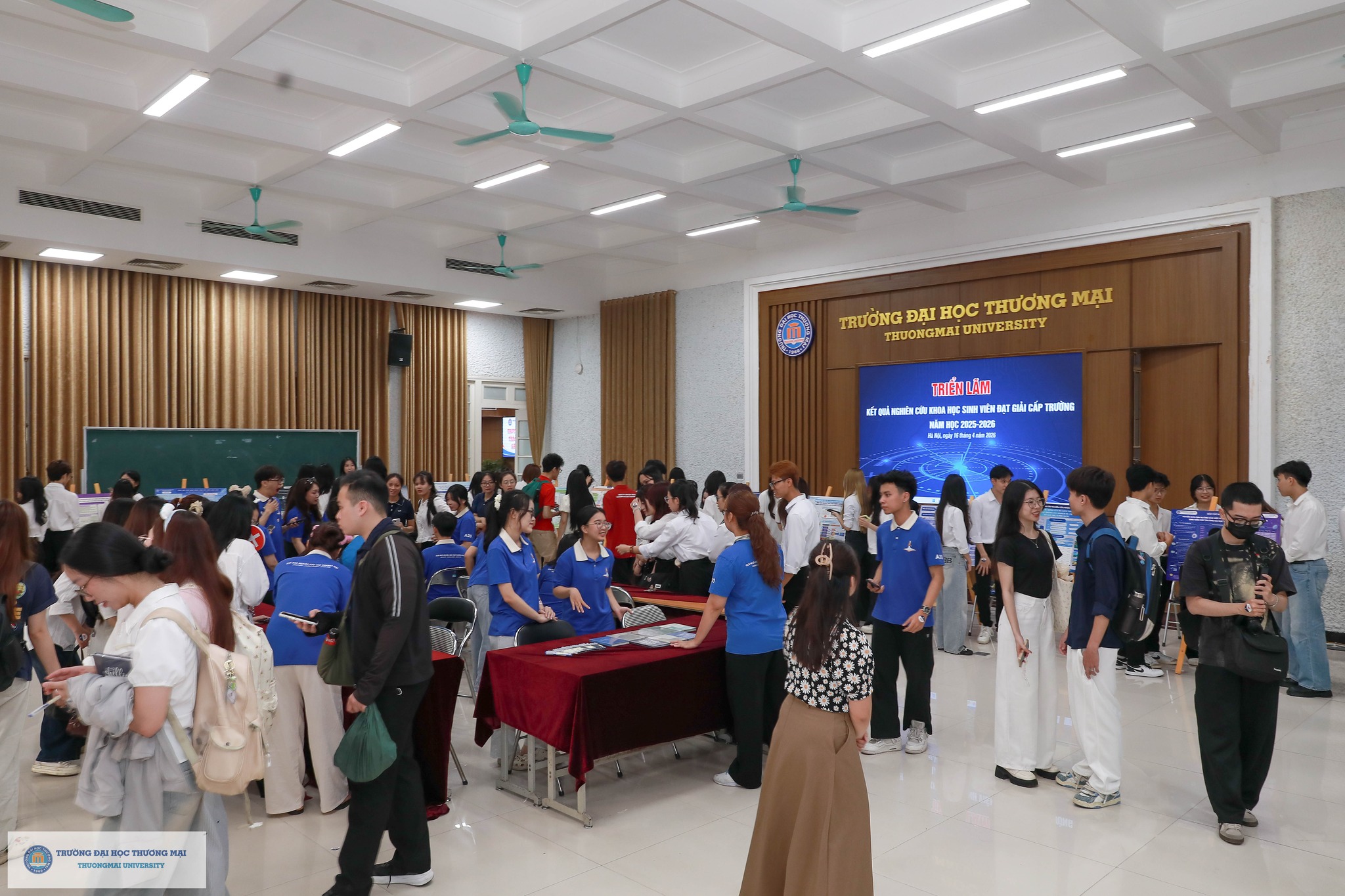 Cũng trong khuôn khổ chương trình, Triển lãm đề tài NCKH sinh viên đạt giải cấp Trường năm học 2025 - 2026 được tổ chức tại Hội trường H2. Triển lãm đã thu hút đông đảo sinh viên quan tâm, từ đó lan tỏa tình yêu nghiên cứu khoa học tới các bạn sinh viên Trường Đại học Thương mại; tạo nên không gian chung và sân chơi đầy bổ ích cho các bạn sinh viên. Các Poster tham gia triễn lãm đã được sinh viên Trường bình chọn online, kết quả: 01 giải Nhất; 02 giải Nhì và 03 giải Ba được công bố trên trang Fanpage của Đoàn Thanh niên Trường Đại học Thương mại.