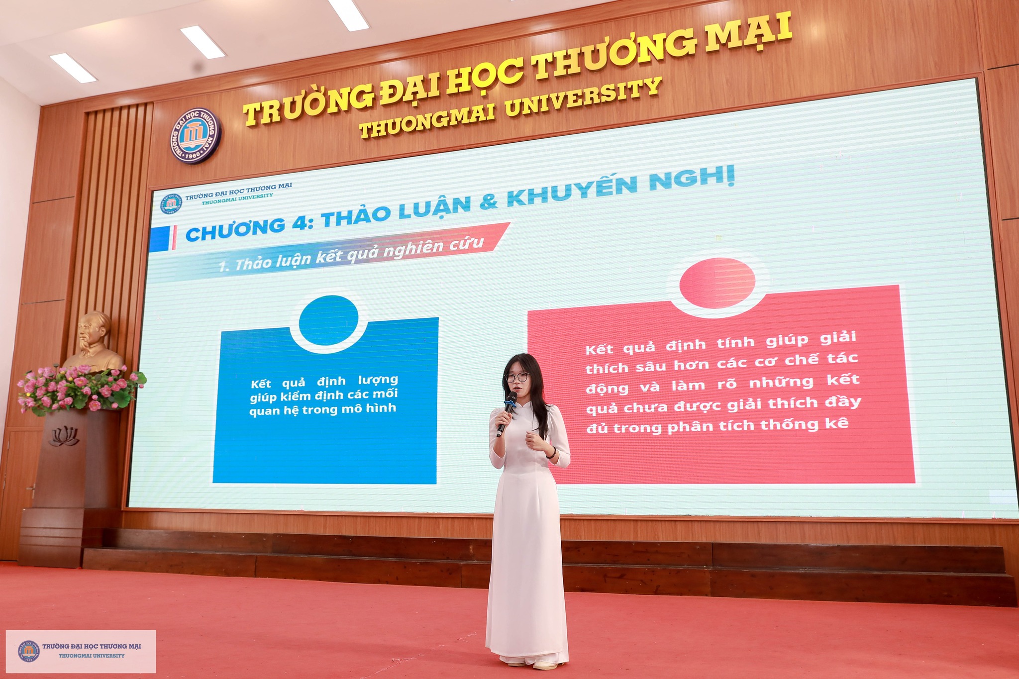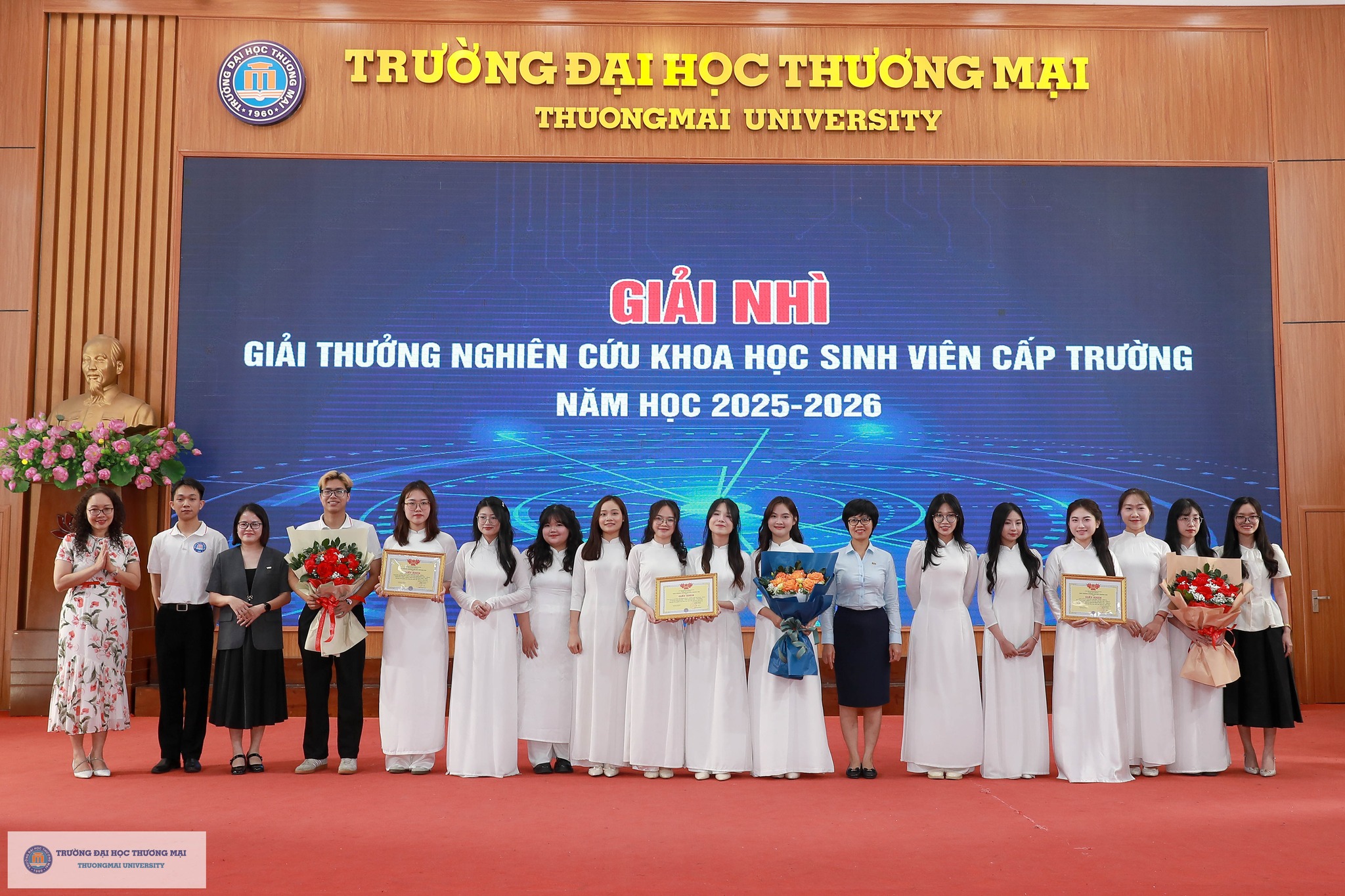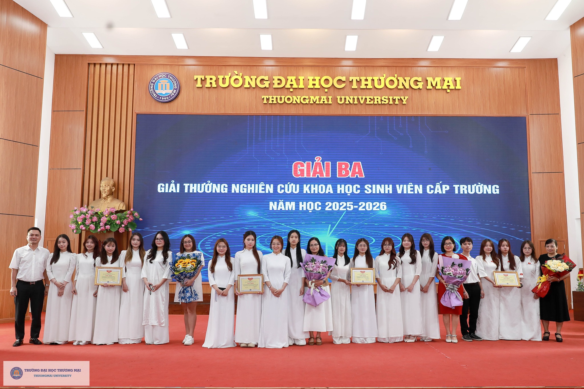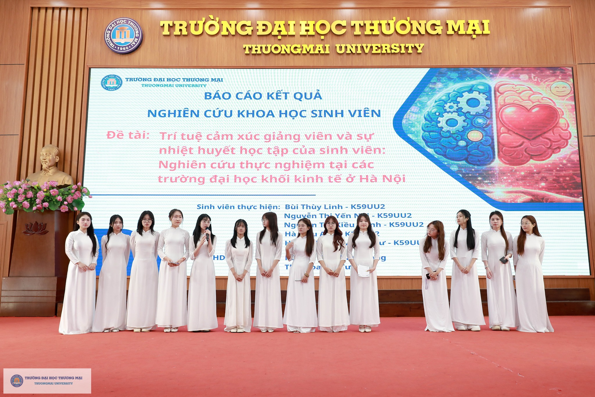 Chương trình Hội nghị báo cáo kết quả nghiên cứu khoa học và vòng thi “Sáng tạo ý tưởng khởi nghiệp” của sinh viên Trường Đại học Thương mại năm 2026 đã thành công tốt đẹp. Điều đặc biệt là, tất cả các hoạt động diễn ra song song trong chương trình đều vinh dự nhận được sự đồng hành Hội Doanh nghiệp trẻ Hà Nội (Hà Nội BA), sự hỗ trợ hết mình của các đơn vị trong Trường và Câu lạc bộ Nhà nghiên cứu trẻ của Trường Đại học Thương mại. Đây là minh chứng cho sự kết nối mạnh mẽ và vững chắc giữa Nhà trường & Doanh nghiệp; giữa Học & Hành; theo sát triết lý giáo dục của TMU: Kiến tạo tương lai (Shape the Future) - Tạo dựng môi trường giáo dục trách nhiệm, chính sách giáo dục đa dạng giúp người học trở thành những cá nhân có tư duy độc lập, sáng tạo, toàn diện cả về trí tuệ và nhân cách, có khát vọng vươn lên; khẳng định thương hiệu TMU trên nền tảng giá trị cốt lõi “Truyền thống – Trách nhiệm – Sáng tạo”.