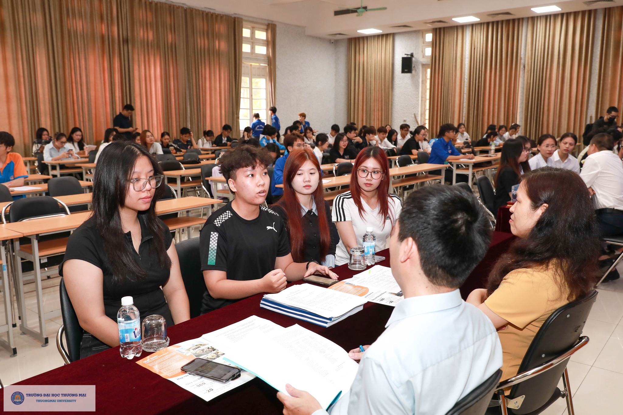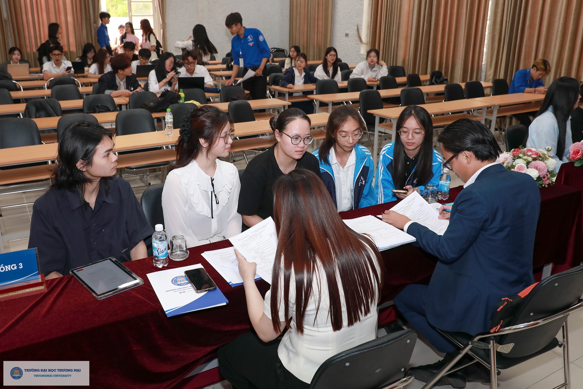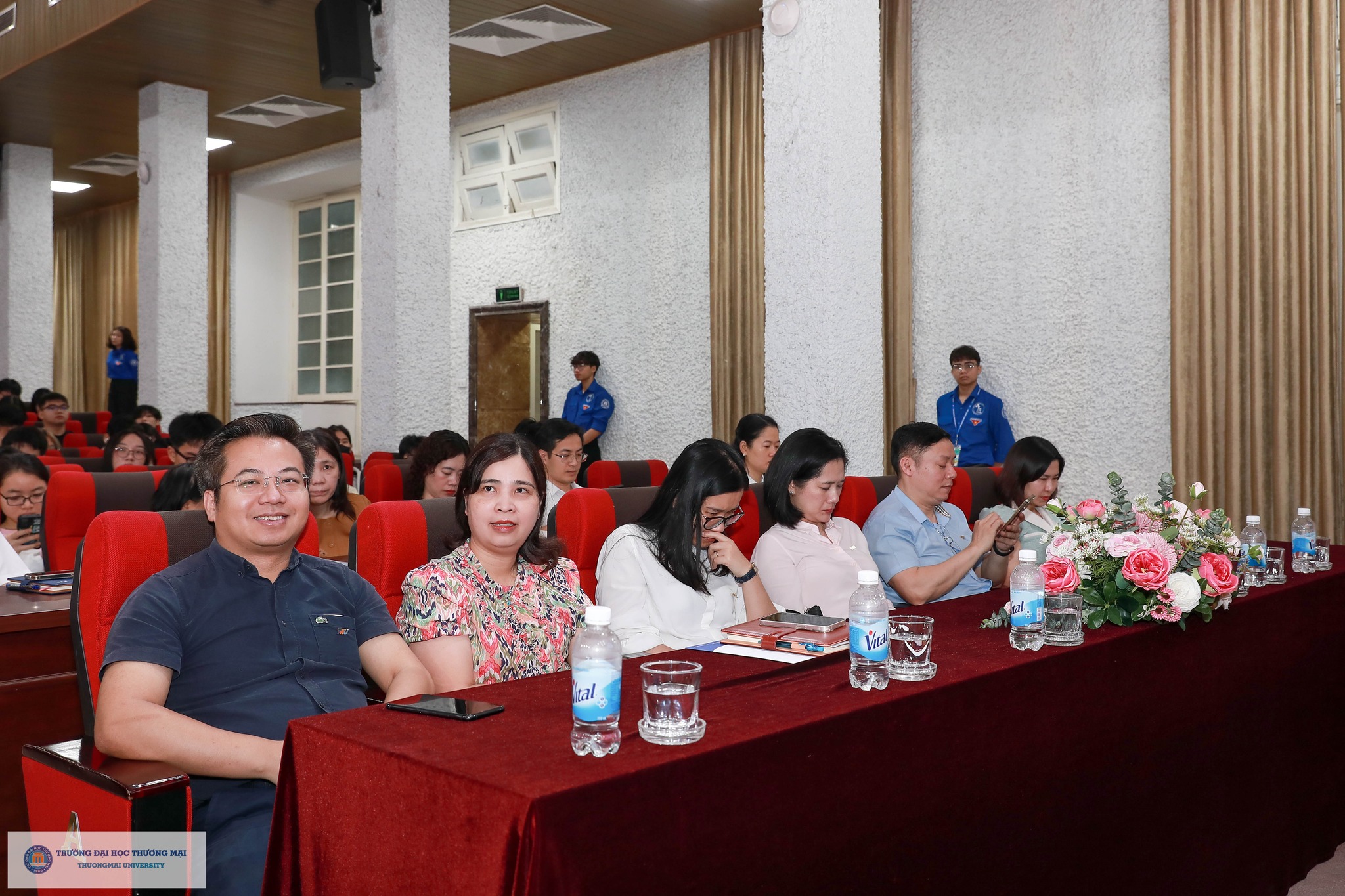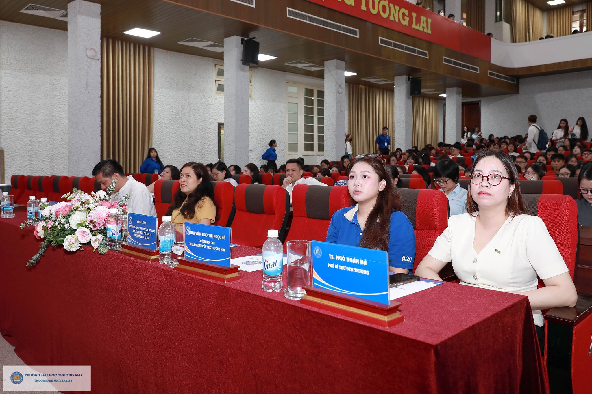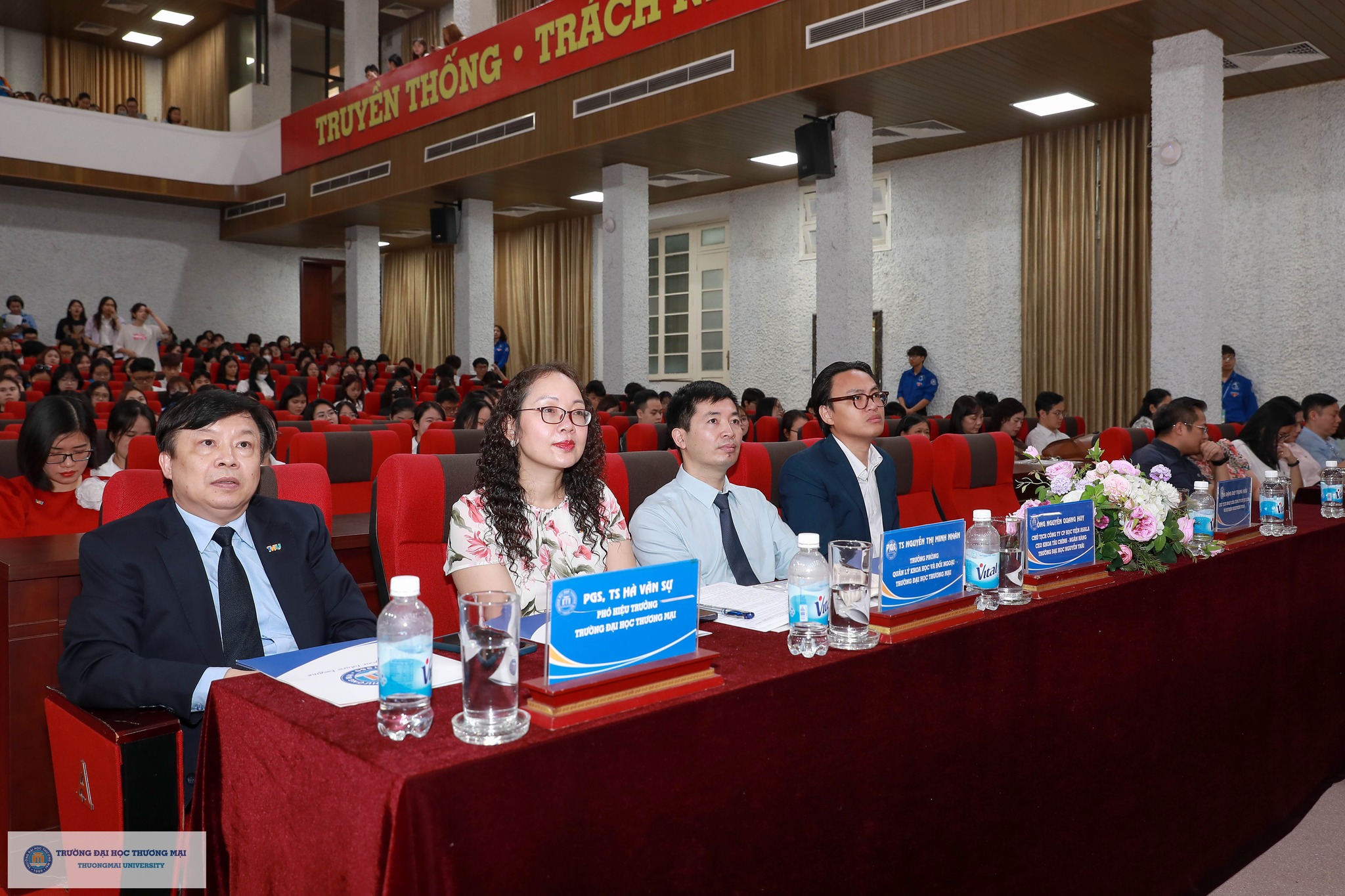 Về phía Trường Đại học Thương mại, tham dự chương trình có sự hiện diện của PGS,TS. Hà Văn Sự - Phó Hiệu trưởng Nhà trường; TS. Ngô Ngân Hà - Phó Bí thư Đoàn Trường; PGS,TS. Nguyễn Thị Minh Nhàn - Trưởng phòng Quản lý Khoa học và Đối ngoại; các thầy cô là đại diện các Phòng ban, các Khoa/Viện quản lý chuyên ngành đào tạo, các thầy cô hướng dẫn; sinh viên Ngô Thị Ngọc Hà - Chủ nhiệm CLB Nhà nghiên cứu trẻ Thương mại; cùng hơn 600 sinh viên đến từ 15 Khoa/Viện quản lý ngành đào tạo trong toàn Trường.