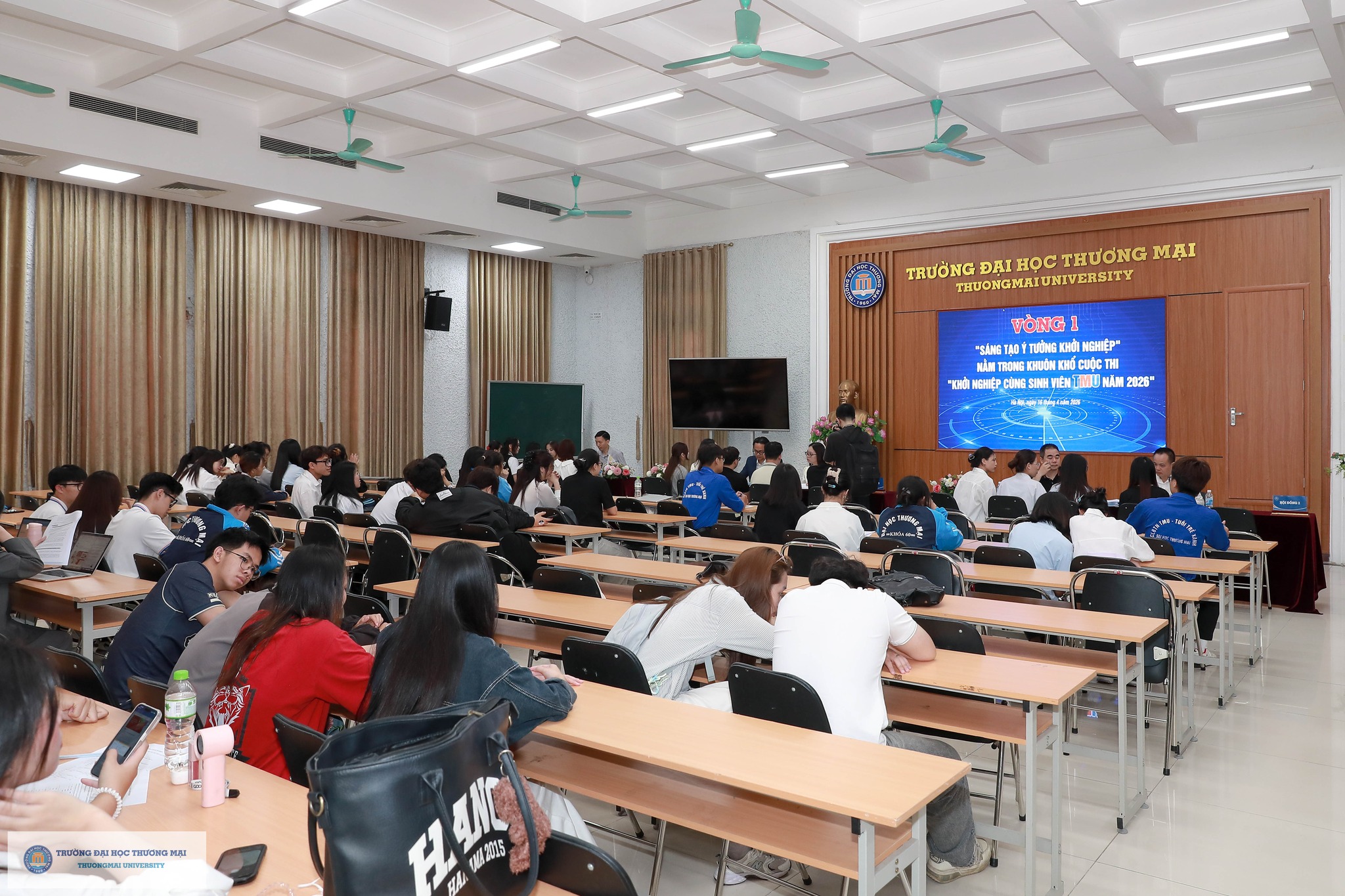 Song song với Hội nghị Báo cáo kết quả nghiên cứu khoa học và Triển lãm đề tài NCKH sinh viên đạt giải cấp Trường năm học 2025 – 2026, Vòng thi “Sáng tạo ý tưởng khởi nghiệp” của sinh viên Trường Đại học Thương mại năm 2026 nằm trong khuôn khổ Cuộc thi “Khởi nghiệp cùng sinh viên TMU năm 2026” đã diễn ra rất sôi nổi. Hội đồng đánh giá là các chuyên gia trong lĩnh vực khởi nghiệp bao gồm các giảng viên và các Ủy viên Ban Chấp hành của Hà Nội BA, lãnh đạo các công ty đã đánh giá nghiêm túc nhằm lựa chọn ra những ý tưởng độc đáo, có tính mới và tính khả thi để đi tiếp các vòng thi sau. Hội đồng đánh giá đã đưa ra nhận định chung: “Các ý tưởng rất phong phú, đầy tính sáng tạo, thể hiện tâm huyết của các em sinh viên. Chúng tôi đã tìm thấy trong đó nhiều ý tưởng có tính khả thi và chắc chắn sẽ dành sự quan tâm của các nhà đầu tư”.