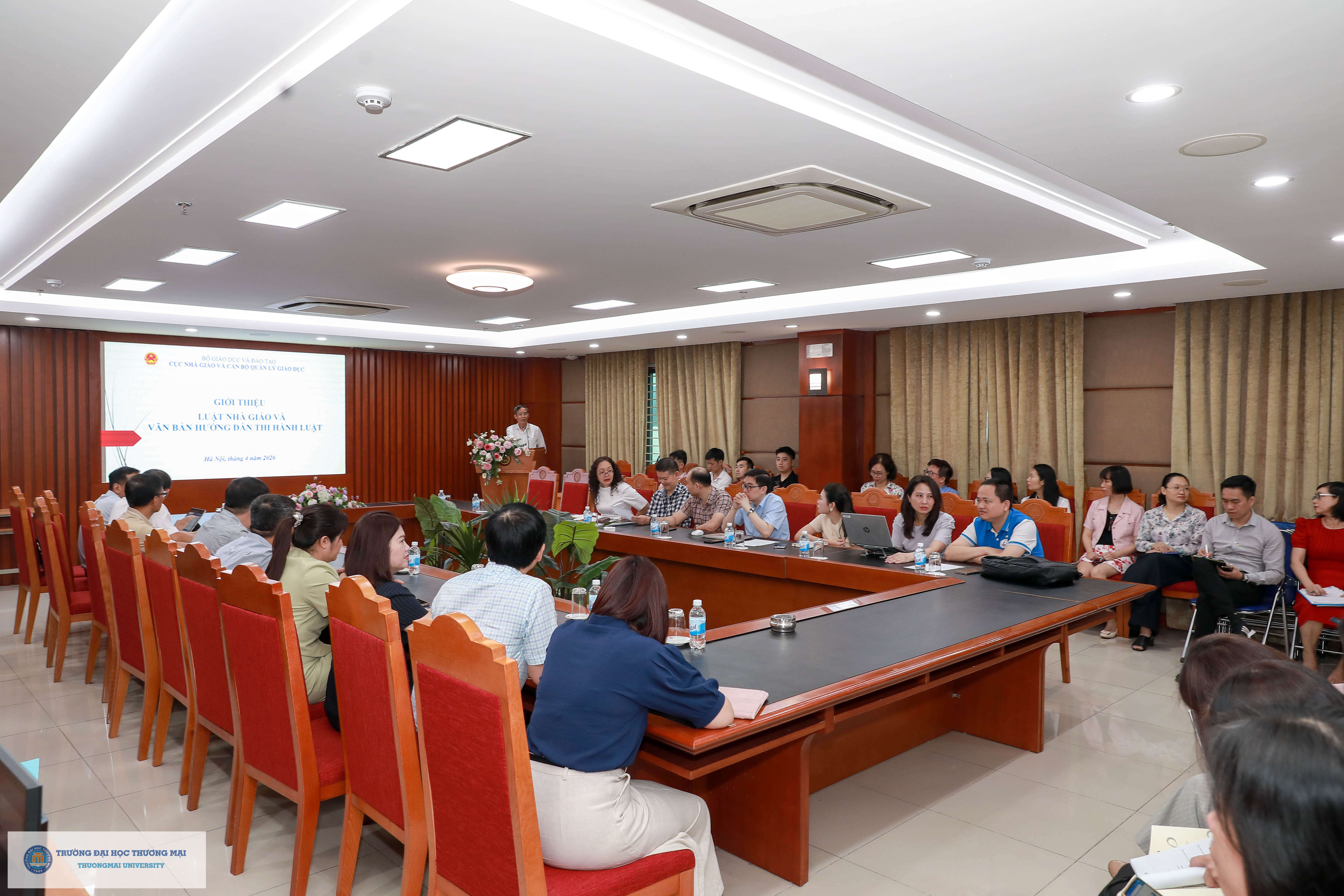 Đến dự Hội nghị, về phía Bộ Giáo dục và Đào tạo có sự hiện diện của TS. Vũ Minh Đức - Cục trưởng Cục Nhà giáo và Cán bộ quản lý giáo dục; TS. Đào Hồng Cường – Phó Vụ trưởng Vụ Pháp chế. Hai chuyên gia đồng thời trực tiếp tuyên truyền, phổ biến Luật Nhà giáo năm 2025 và các chính sách đối với nhà giáo đại học theo Nghị định số 93/2026/NĐ-CP trong Hội nghị.