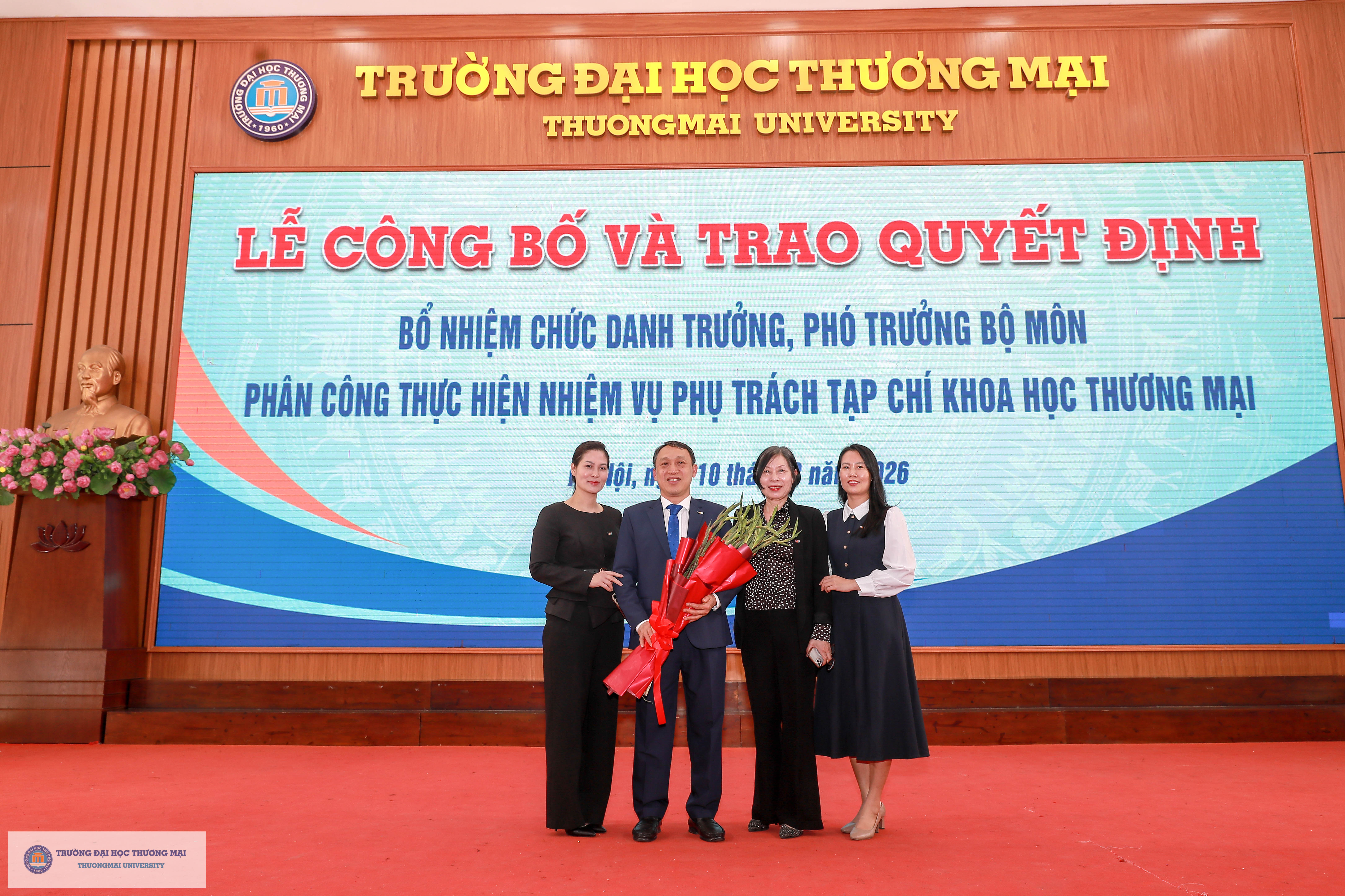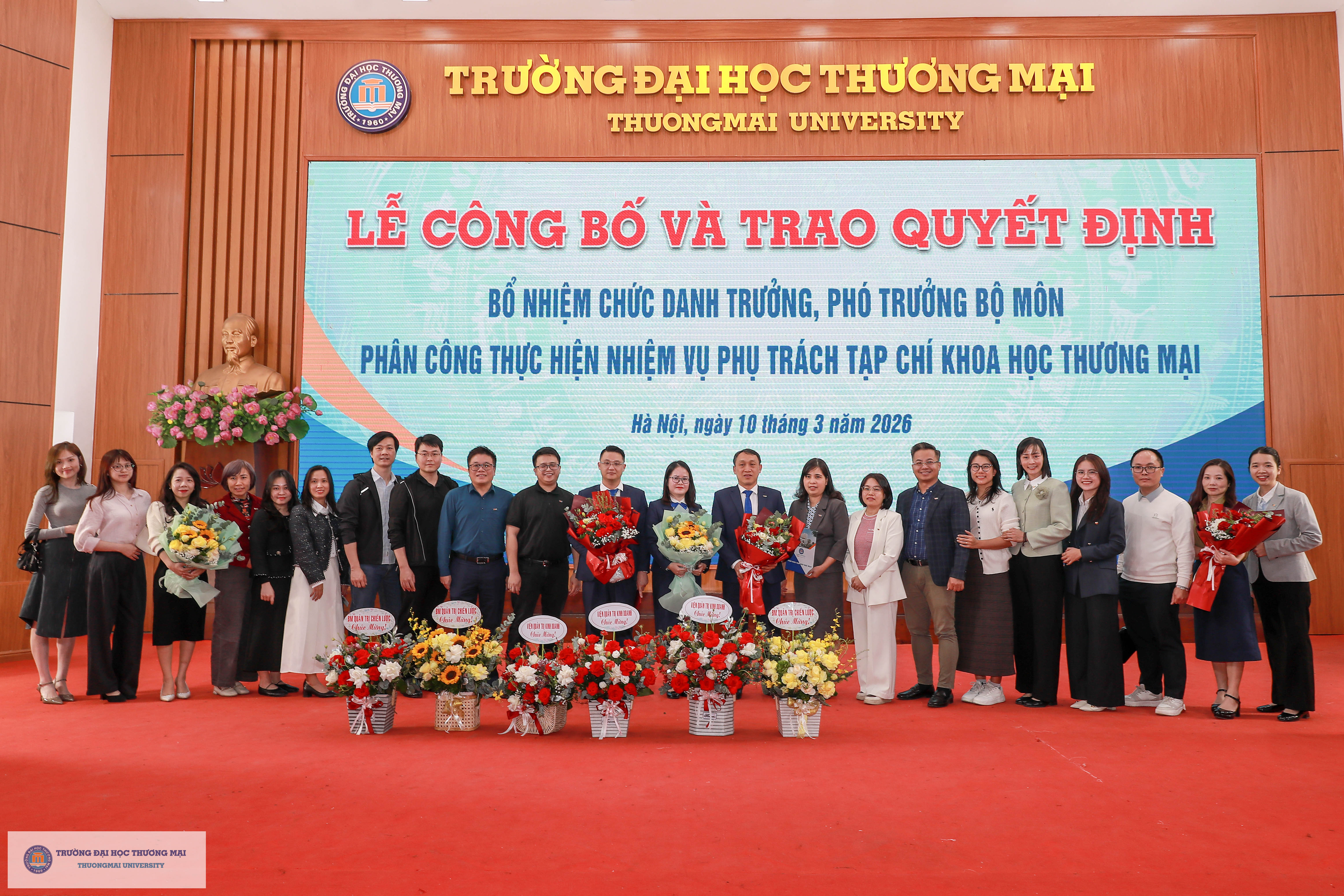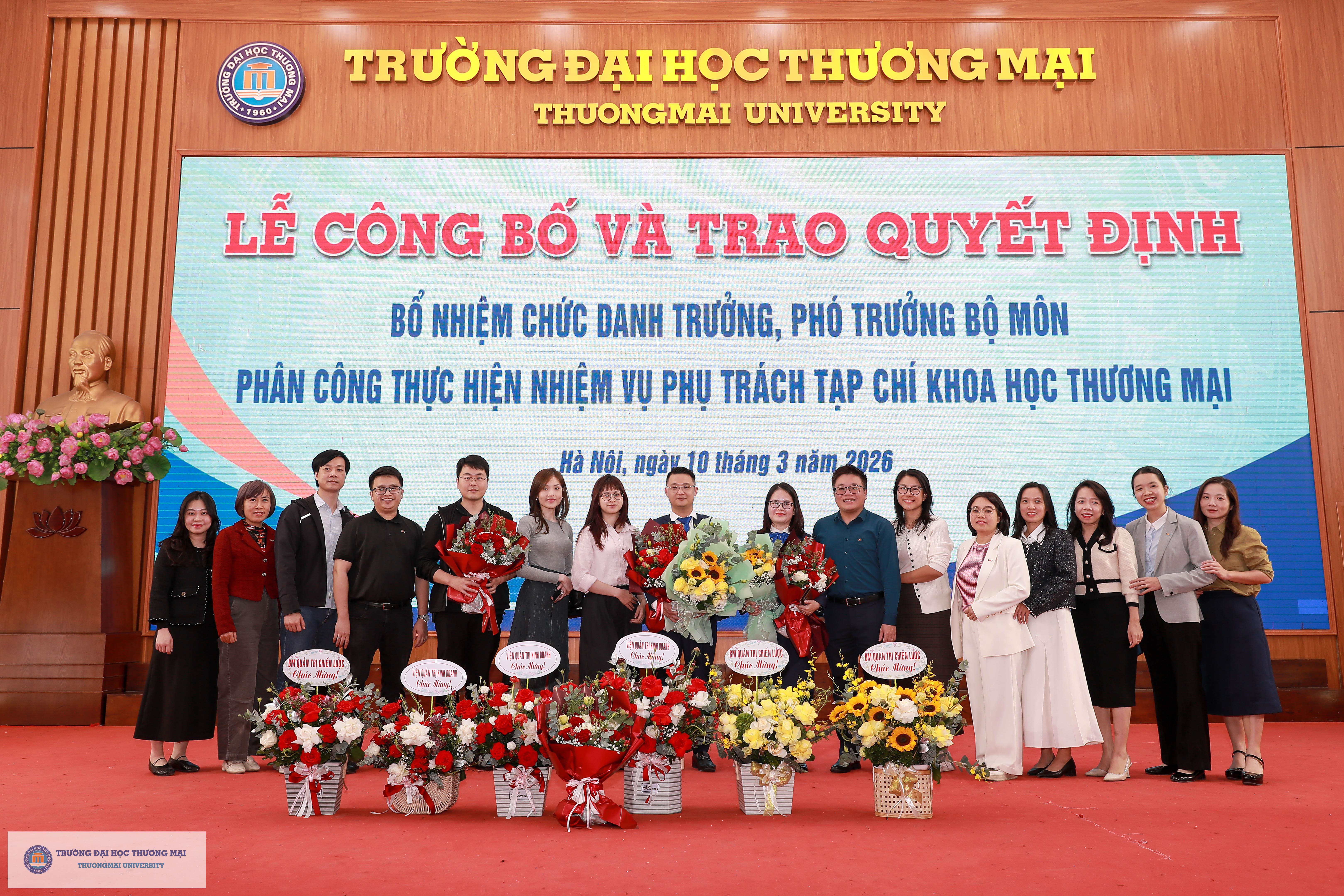 Chương trình Lễ công bố và trao quyết định bổ nhiệm chức danh Trưởng, Phó Trưởng Bộ môn; Phân công thực hiện nhiệm vụ phụ trách Tạp chí Khoa học Thương mại đã kết thúc thành công tốt đẹp. Chúc các đồng chí được bổ nhiệm, giao nhiệm vụ phụ trách phát huy vai trò, ý thức, trách nhiệm của mình trên cương vị mới để hoàn thành xuất sắc trách nhiệm trong thời gian tới.