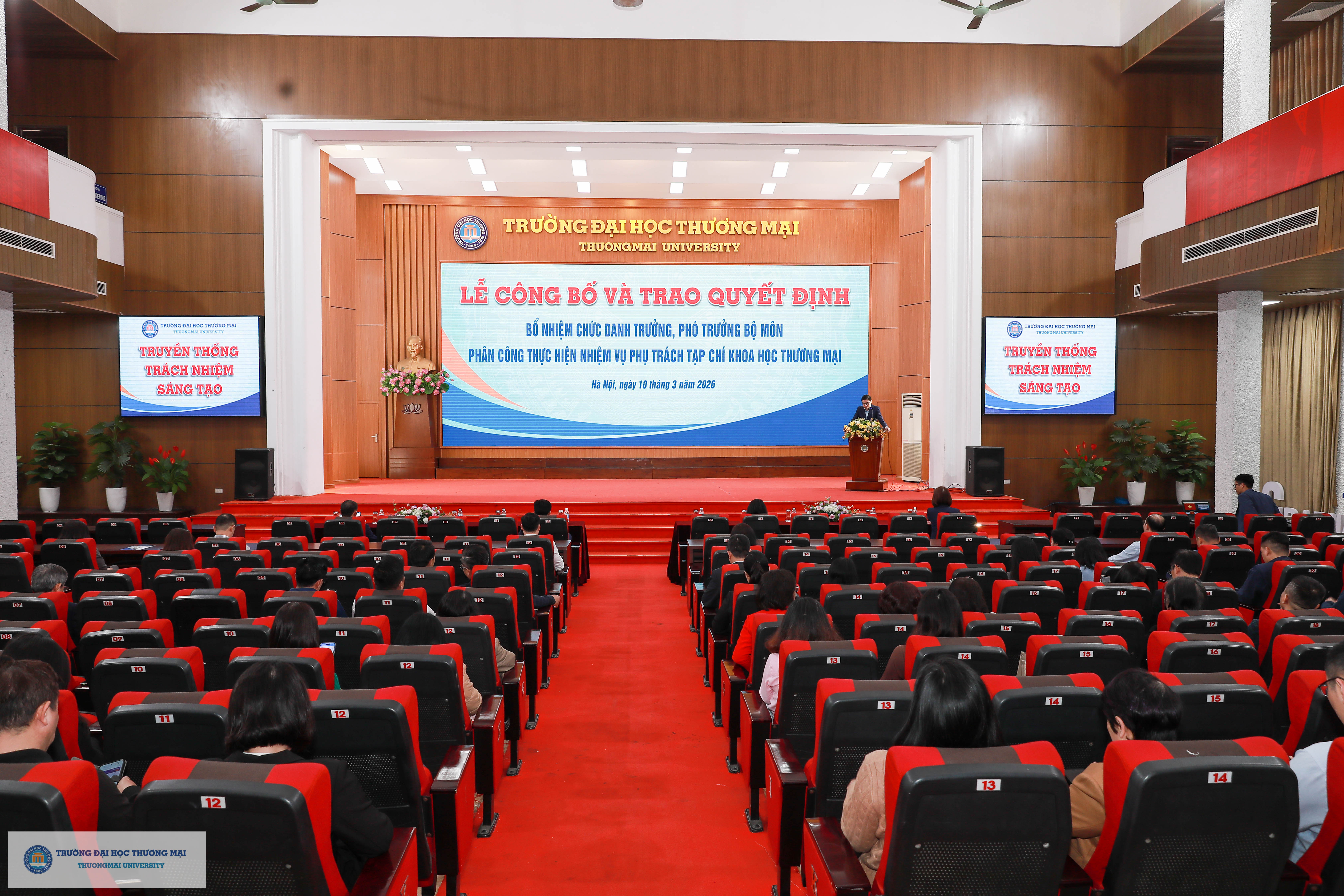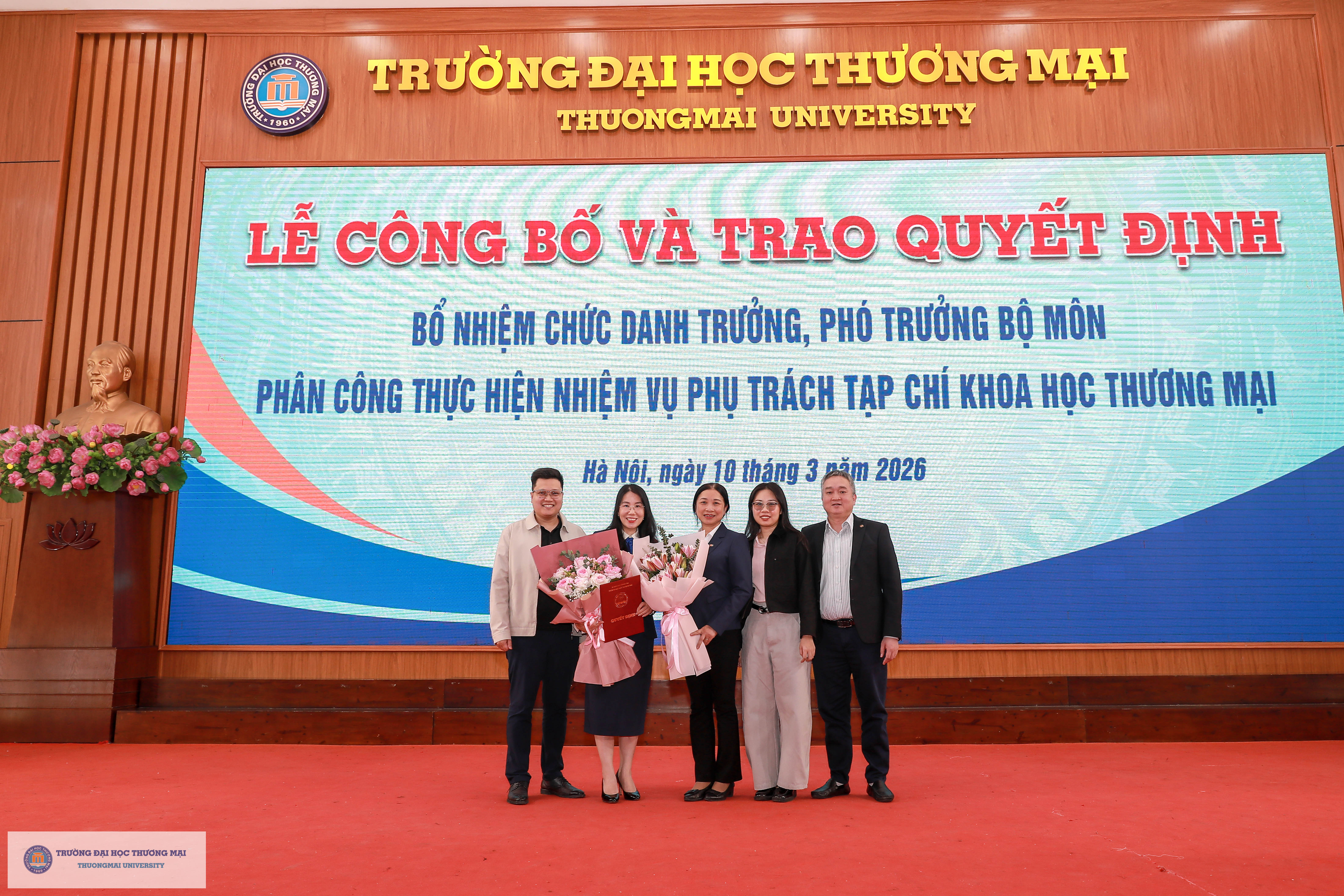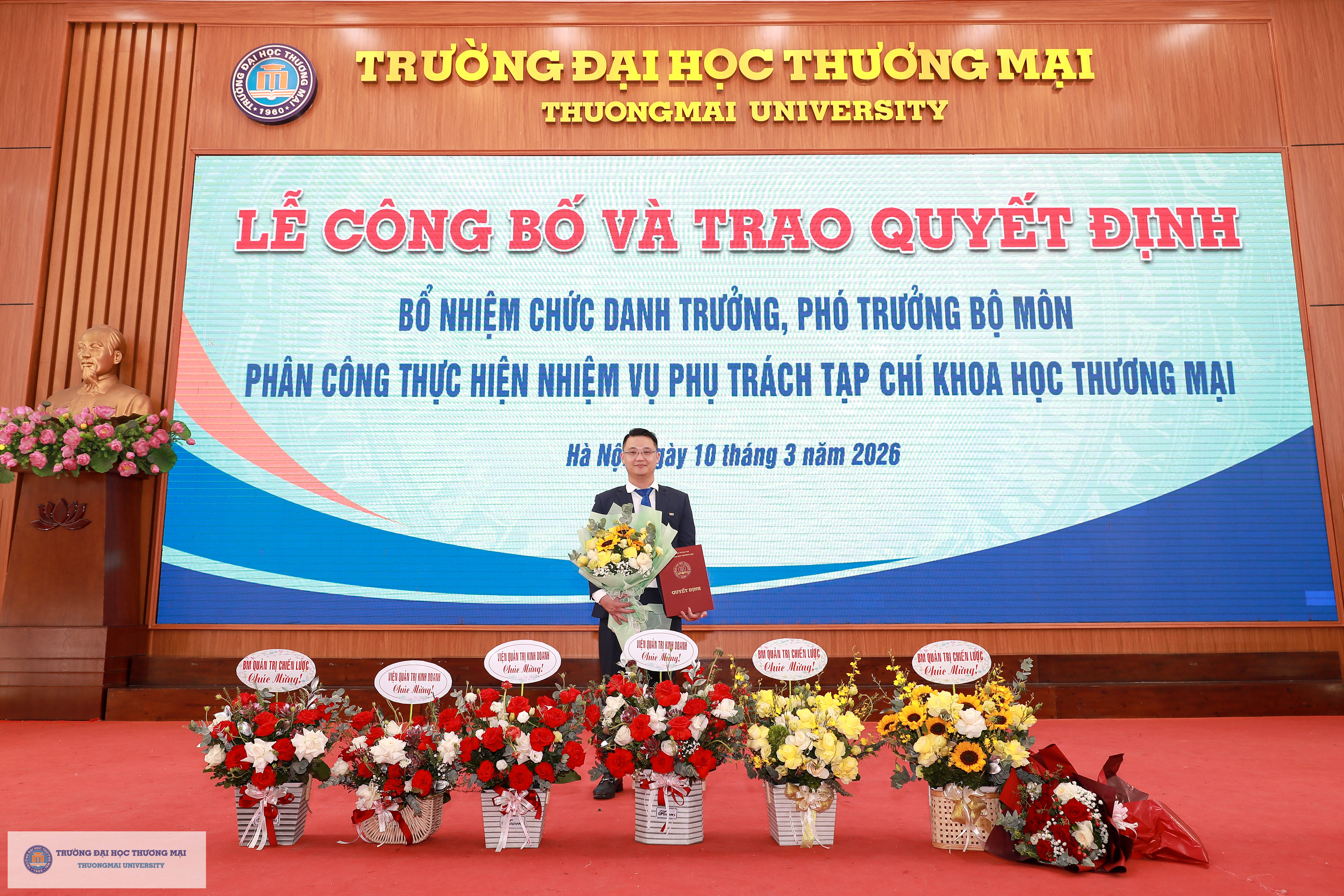 Chương trình Lễ công bố và trao quyết định bổ nhiệm chức danh Trưởng, Phó Trưởng Bộ môn; Phân công thực hiện nhiệm vụ phụ trách Tạp chí Khoa học Thương mại đã kết thúc thành công tốt đẹp. Chúc các đồng chí được bổ nhiệm, giao nhiệm vụ phụ trách phát huy vai trò, ý thức, trách nhiệm của mình trên cương vị mới để hoàn thành xuất sắc trách nhiệm trong thời gian tới.