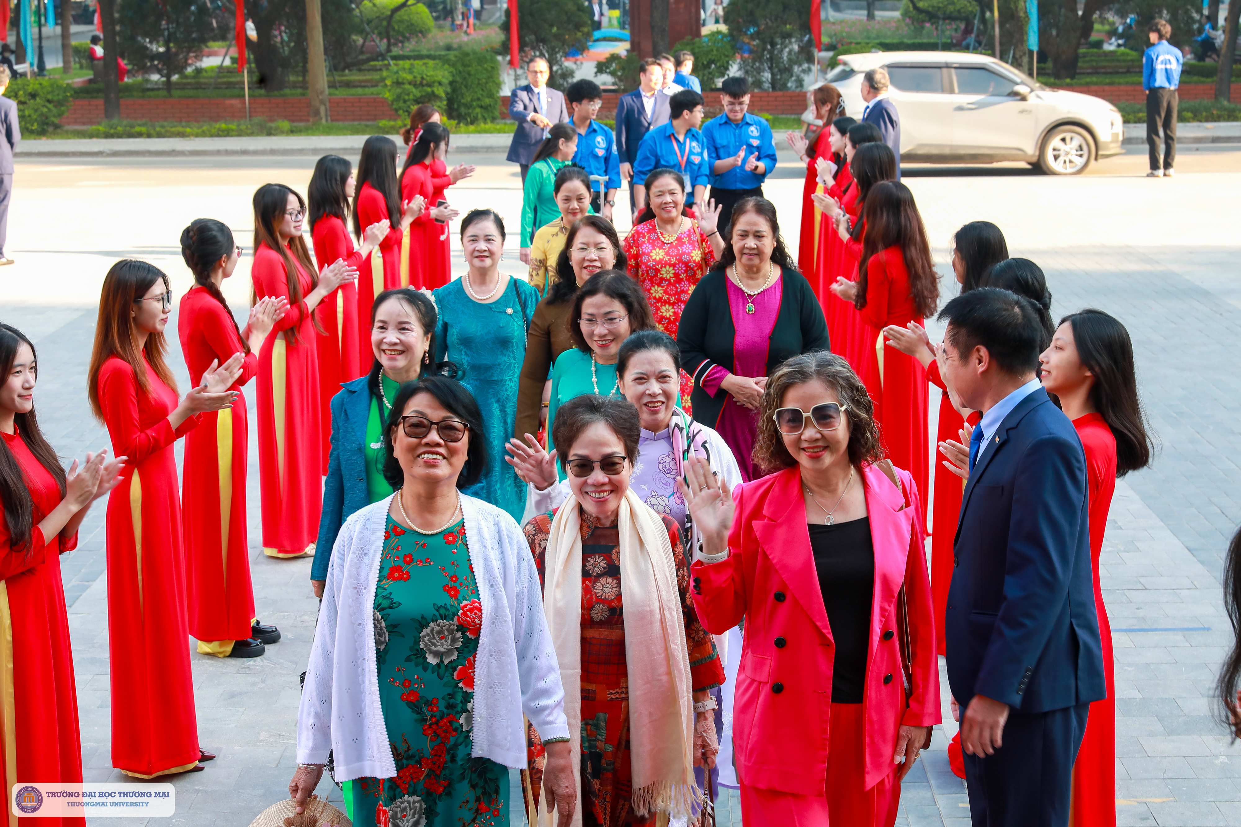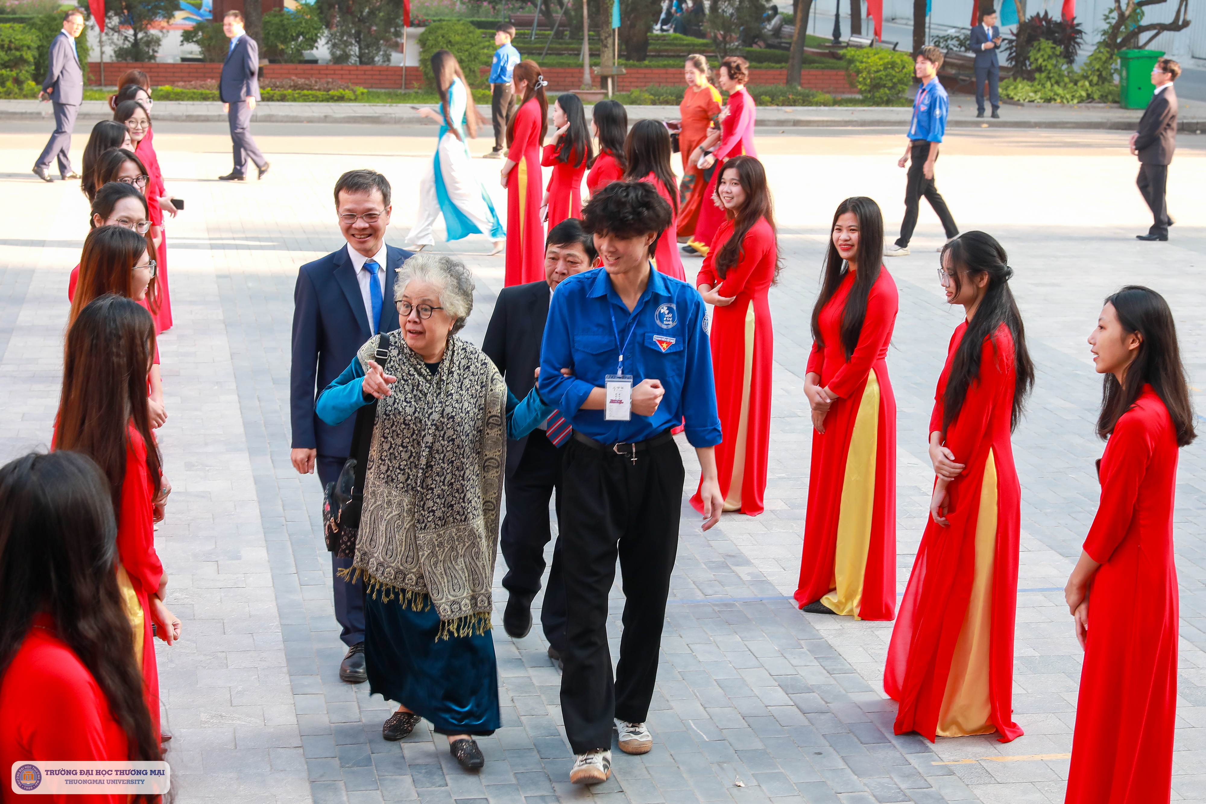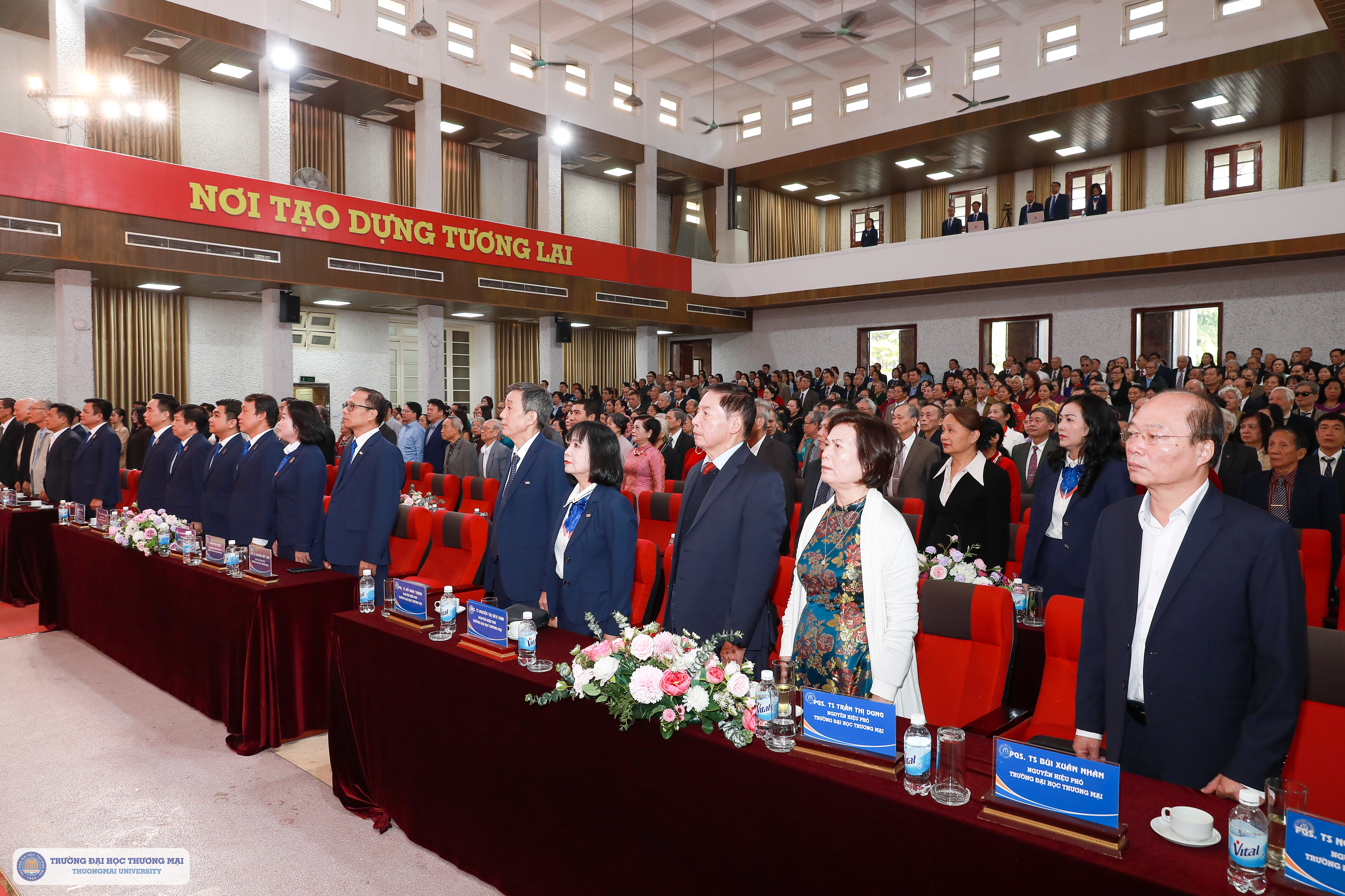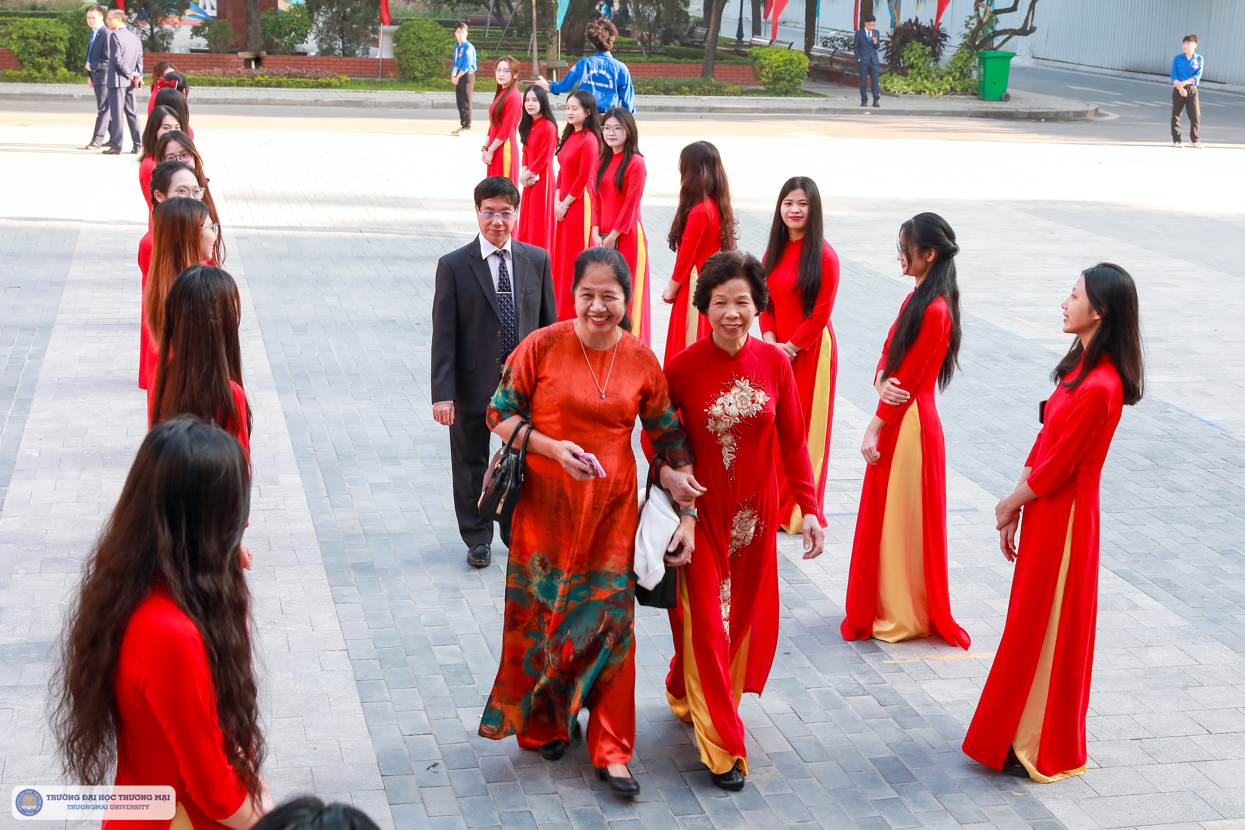 Buổi Lễ cũng vinh dự được đón tiếp các Thầy, Cô nguyên là Lãnh đạo Nhà trường các thời kỳ: GS,TSKH. Nguyễn Mại – Nguyên Thứ trưởng Bộ Kế hoạch và Đầu tư, nguyên Phó Chủ tịch UBND Thành phố Hà Nội, nguyên Hiệu trưởng Nhà trường; GS,TS. Phạm Vũ Luận – Nguyên Ủy viên Trung ương Đảng, nguyên Bộ trưởng Bộ Giáo dục và Đào tạo, nguyên Hiệu trưởng Nhà trường; TS. Nguyễn Thị Xuân Thảo – Chủ tịch Hội Cựu Giáo chức trường, nguyên Bí thư Đảng ủy, nguyên Phó Hiệu trưởng Nhà trường; Thầy Nguyễn Thiện Đạt – Nguyên Phó Hiệu trưởng Nhà trường; Thầy Tạ Văn Hài – Nguyên Phó Hiệu trưởng Nhà trường; PGS,TS. Trần Thị Dung – Nguyên Phó Hiệu trưởng Nhà trường; PGS,TS. Nguyễn Bích Đạt – Nguyên Thứ trưởng Bộ Kế hoạch và Đầu tư, nguyên Phó Hiệu trưởng Nhà trường; PGS,TS. Bùi Xuân Nhàn – Nguyên Phó Hiệu trưởng Nhà trường; PGS,TS. Đỗ Minh Thành – Nguyên Bí thư Đảng ủy, nguyên Phó Hiệu trưởng Nhà trường; PGS,TS. Nguyễn Hoàng Long – Nguyên Phó Hiệu trưởng Nhà trường; PGS,TS. Nguyễn Thị Bích Loan – Nguyên Phó Hiệu trưởng Nhà trường; các thế hệ cựu viên chức, cựu người học Trường Đại học Thương mại.