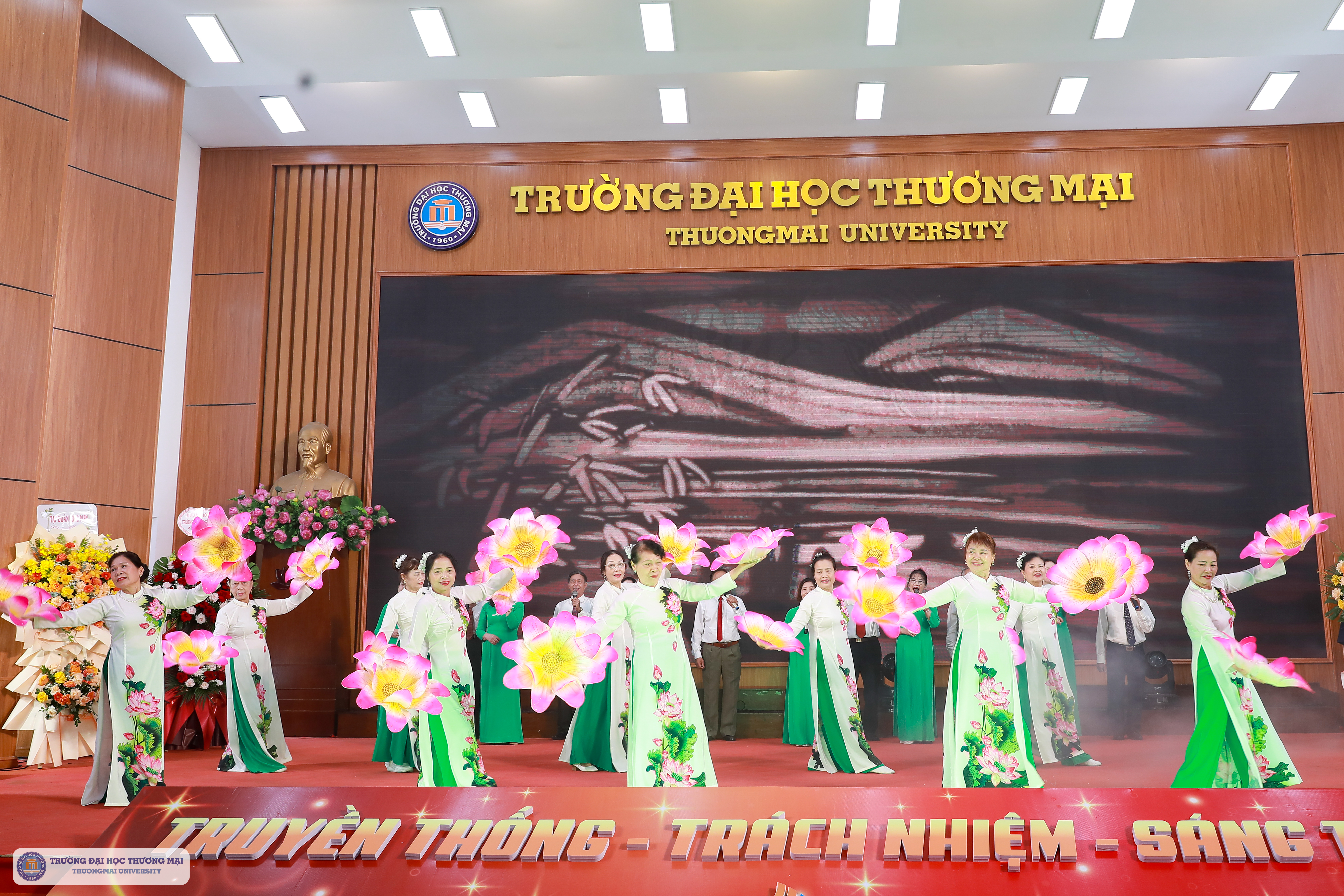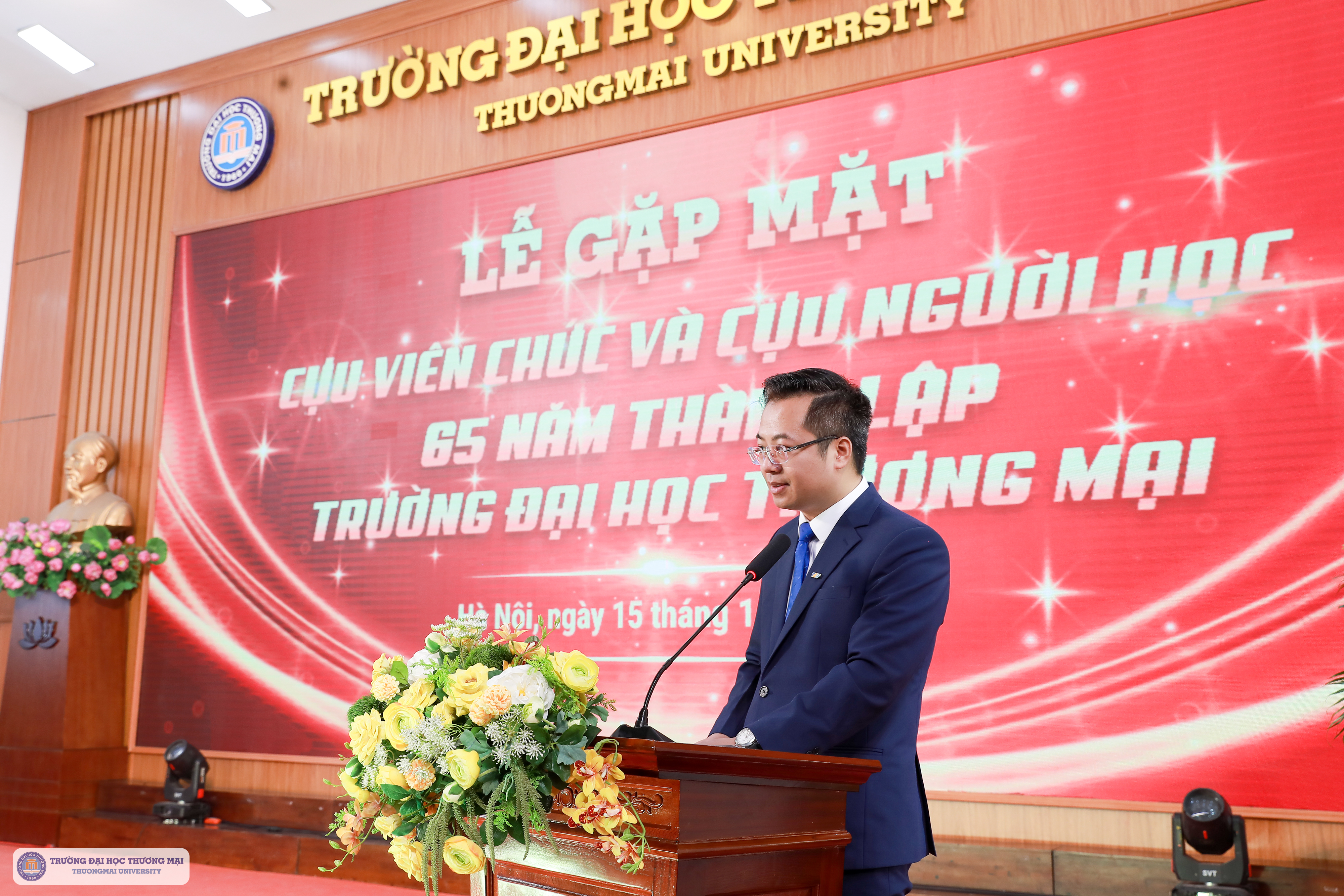 Tri ân với các thế hệ cựu giáo chức, cựu giáo sinh, sinh viên Nhà trường qua các thời kỳ, PGS,TS. Nguyễn Hoàng - Phó Bí thư Đảng ủy, Hiệu trưởng Nhà trường xúc động chia sẻ, Trường Đại học Thương mại là một Đại gia đình - có tinh thần đoàn kết bền chặt, có Trí, có Dũng, có Nhân, có Nghĩa, dám Nghĩ, dám Làm, dám Chịu trách nhiệm. Chính tinh thần ấy đã giúp TMU chuyển mình mạnh mẽ, trở thành một ngôi trường năng động, sáng tạo và nhân văn, nơi mỗi người học, mỗi cán bộ đều có cơ hội phát triển và tỏa sáng.