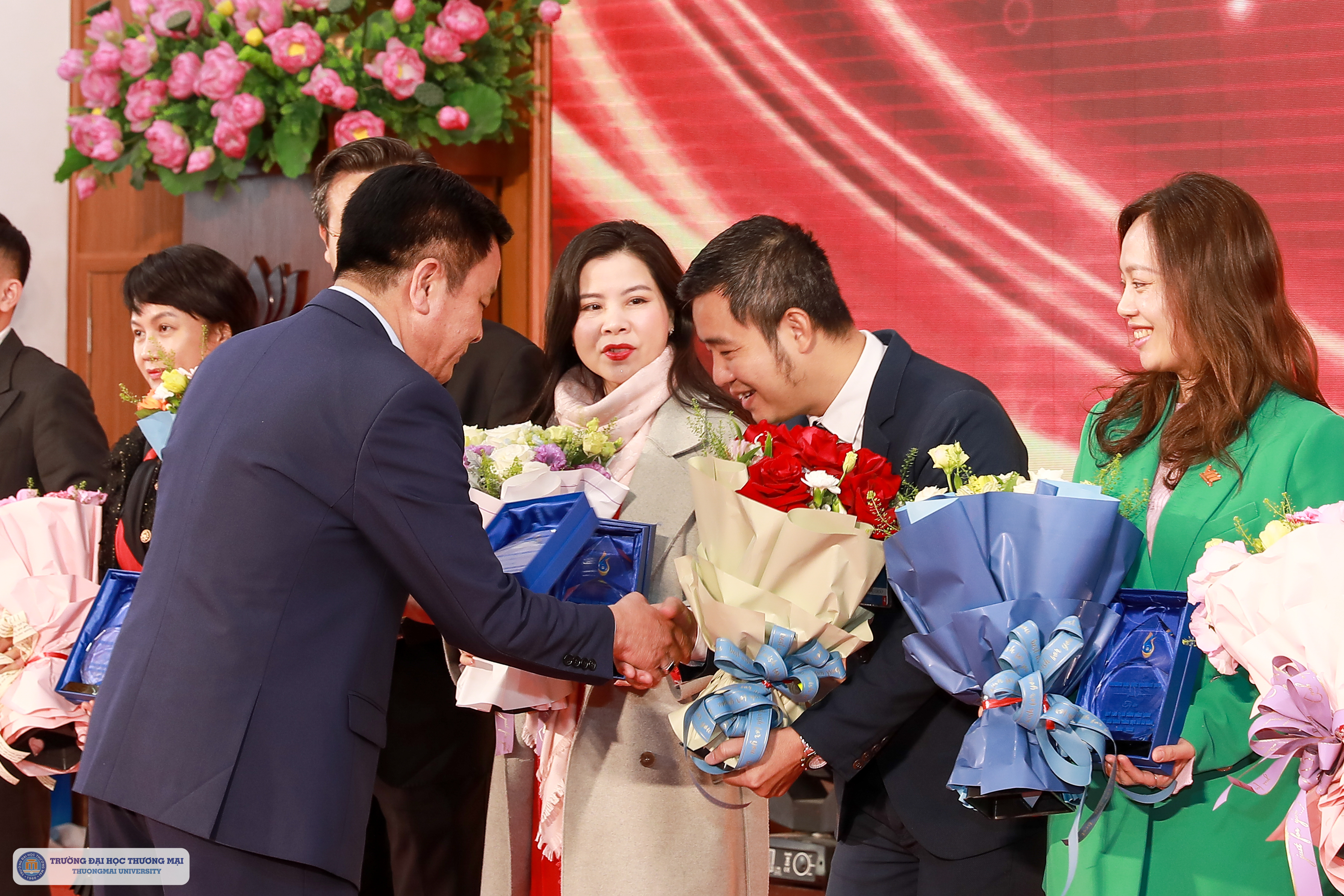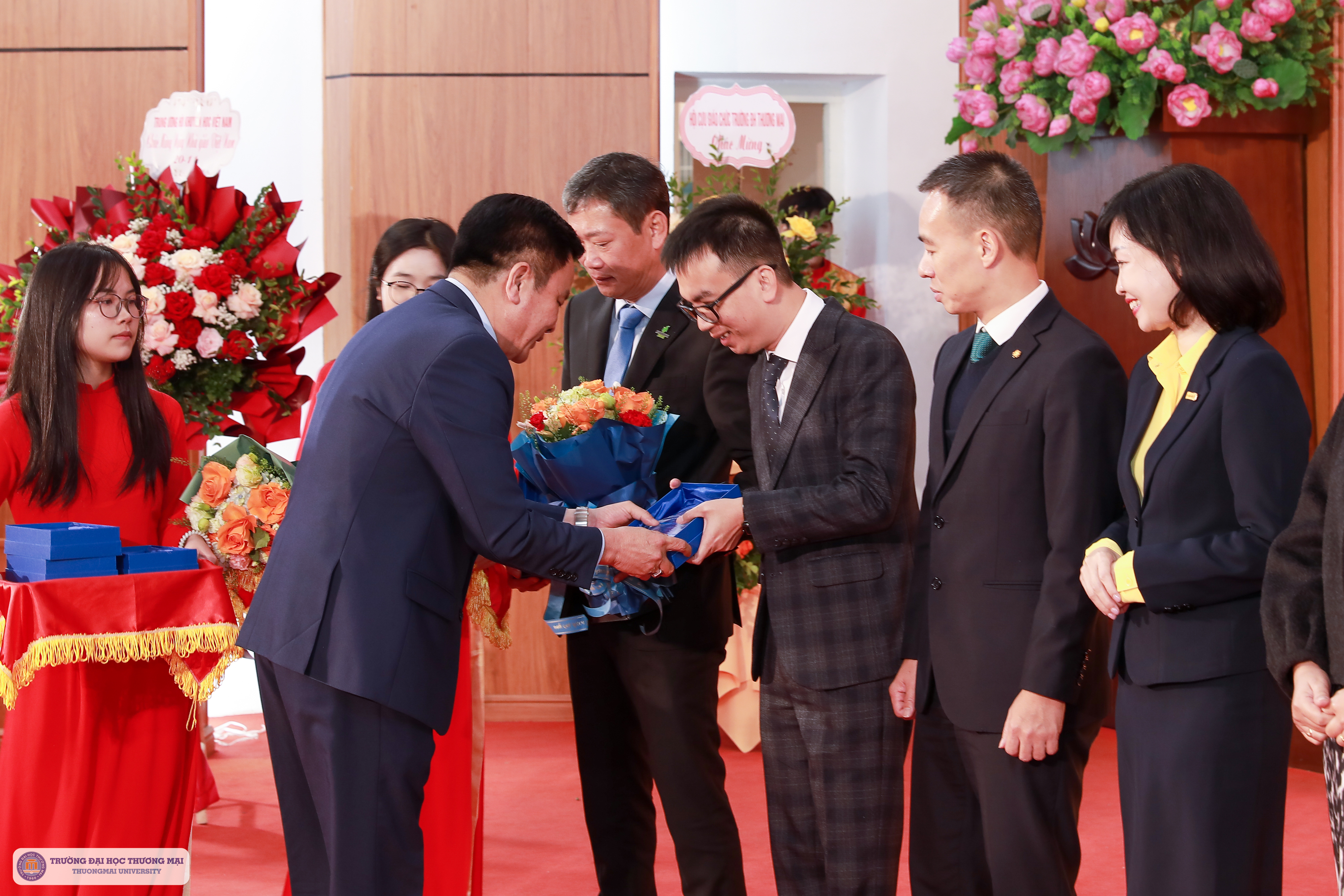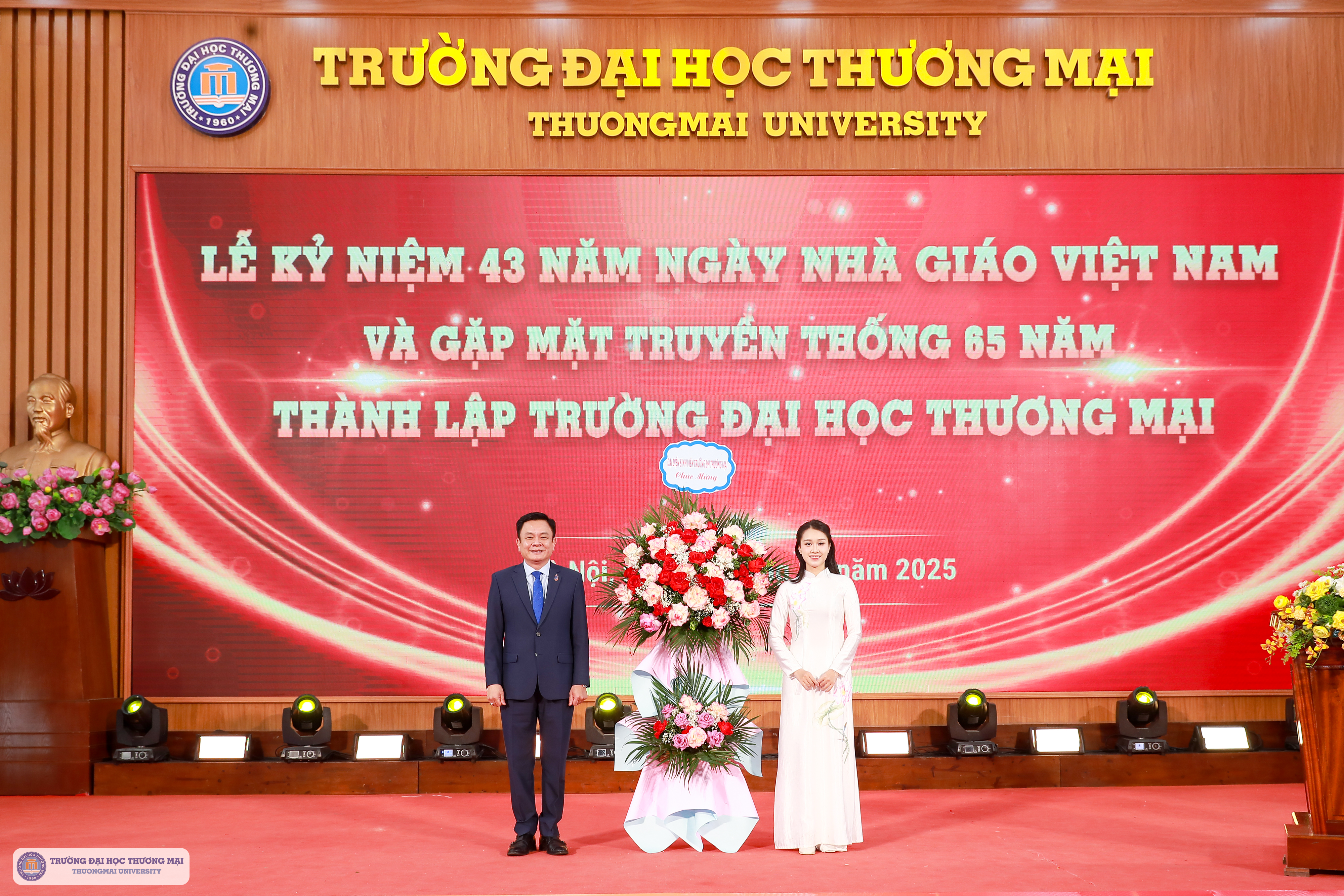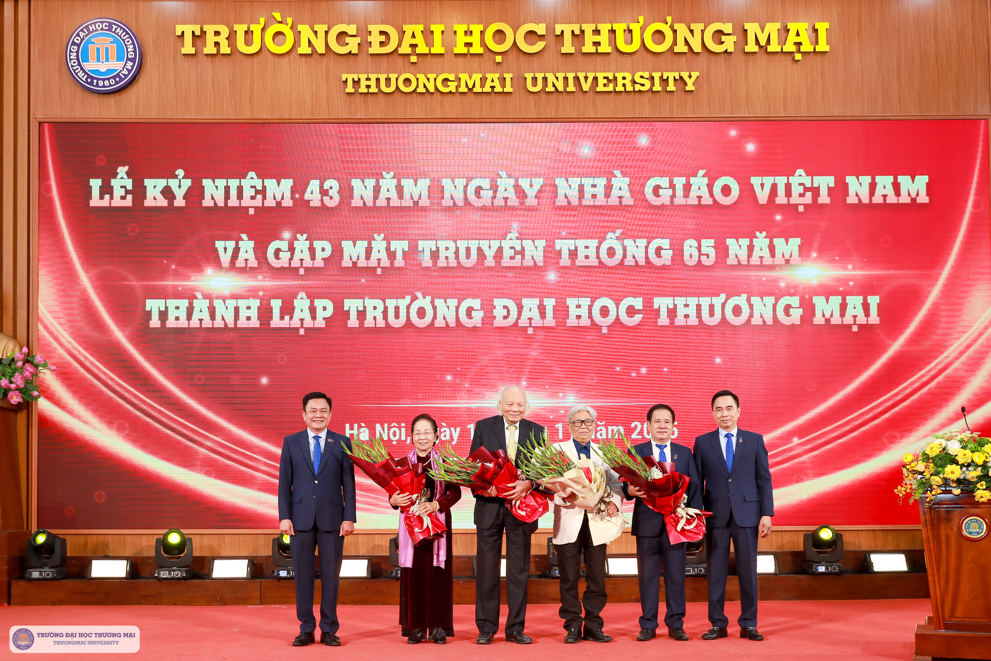 Tại buổi Lễ, trong không khí trang trọng và ấm áp nghĩa tình, nhằm ghi nhận công lao và đóng góp của các thế hệ cán bộ, giảng viên Trường Đại học Thương mại, những người đã đặt nền móng vun đắp cho sự phát triển của Nhà trường, đại diện Lãnh đạo Nhà trường đã tặng hoa tri ân các Thầy, Cô nguyên là Hiệu trưởng Nhà trường qua các thời kỳ. Những bó hoa tươi thắm không chỉ là lời cảm ơn, mà còn là sự tri ân sâu sắc của Nhà trường gửi tới các thế hệ Lãnh đạo – những người đã dành trọn tâm huyết, trí tuệ và cả những năm tháng đẹp nhất của mình cho sự nghiệp xây dựng và phát triển Trường Đại học Thương mại.