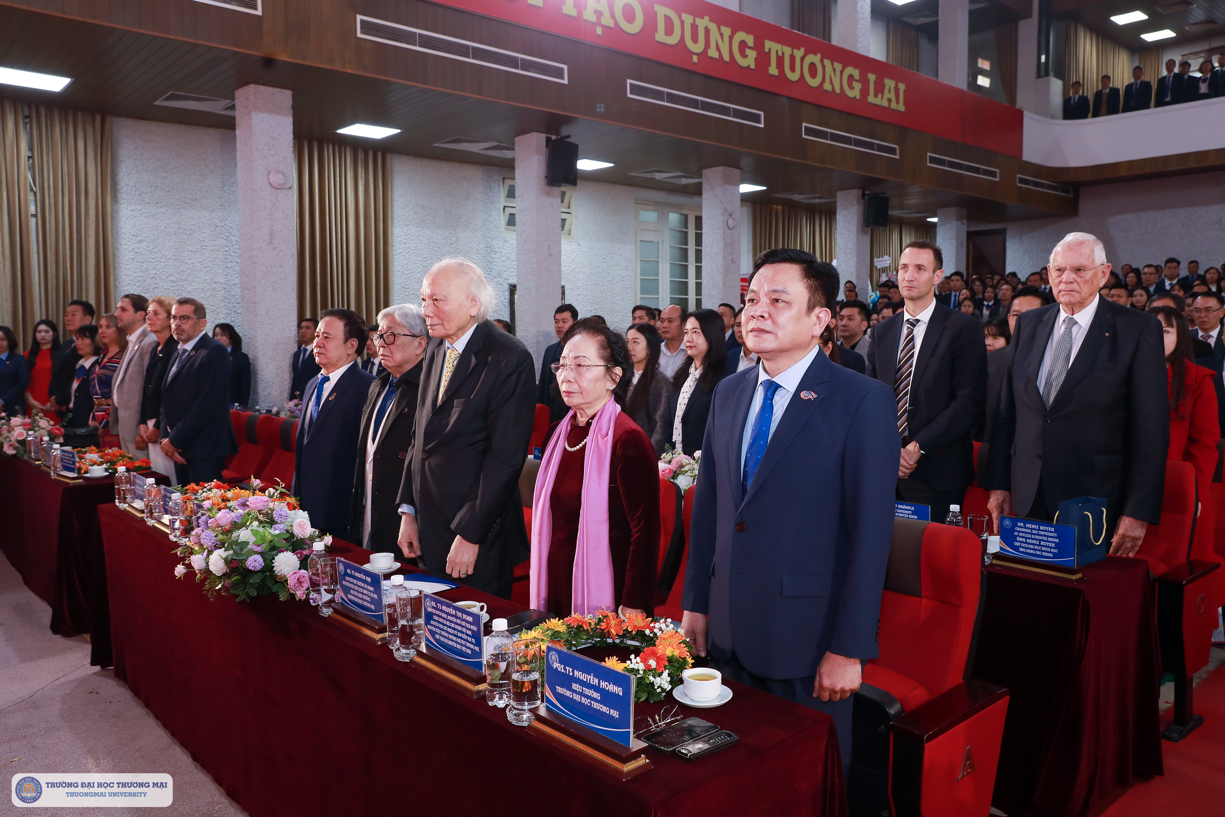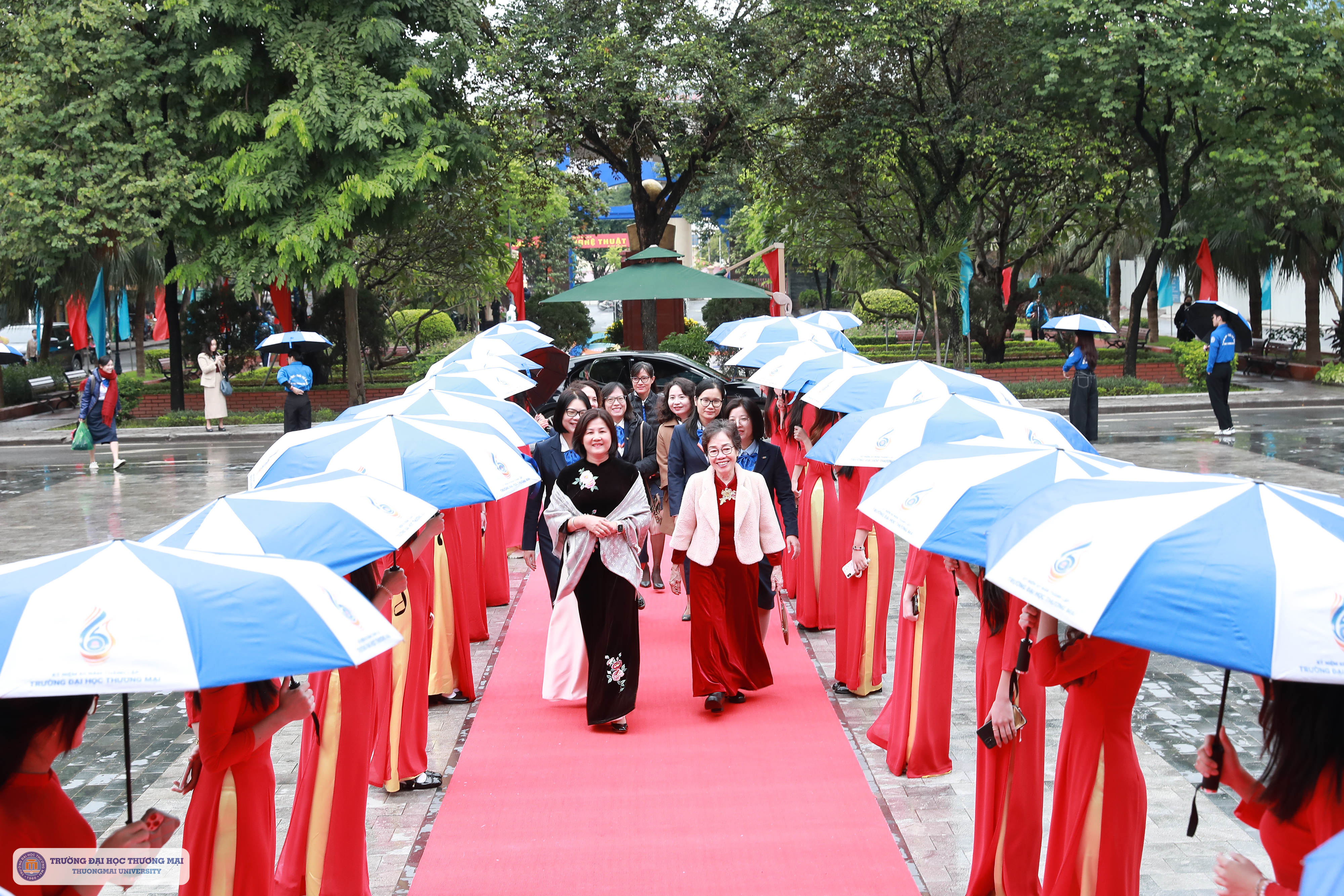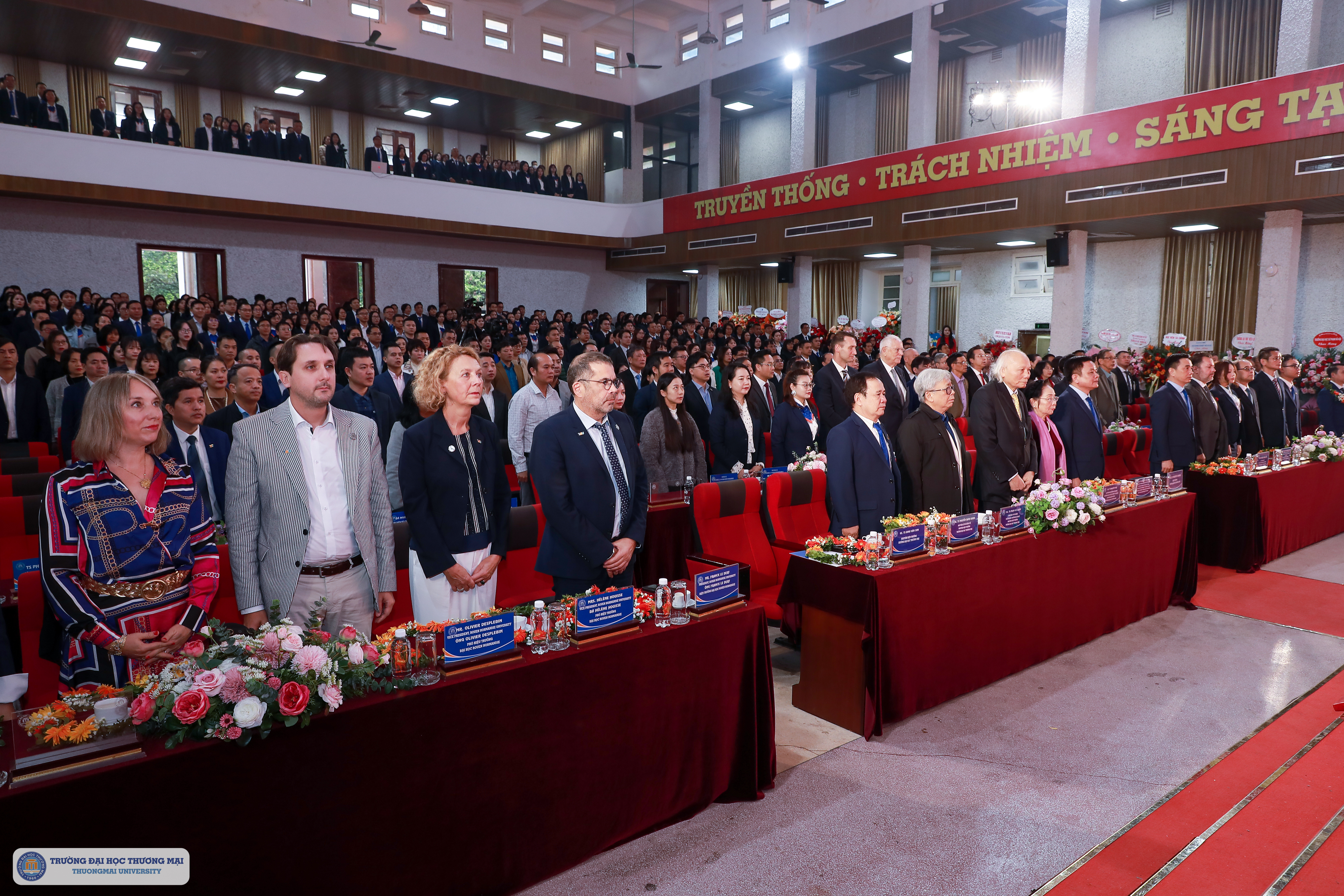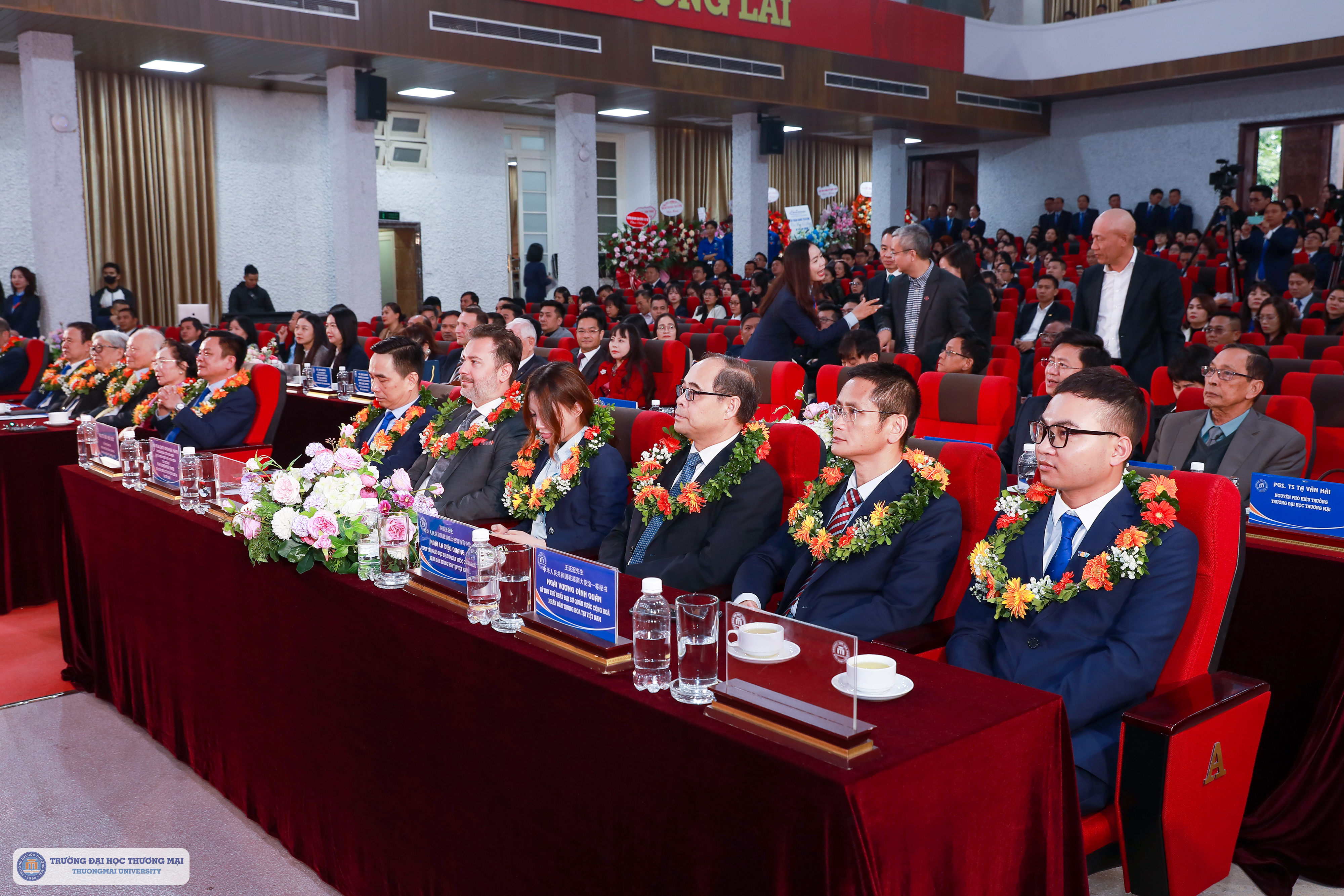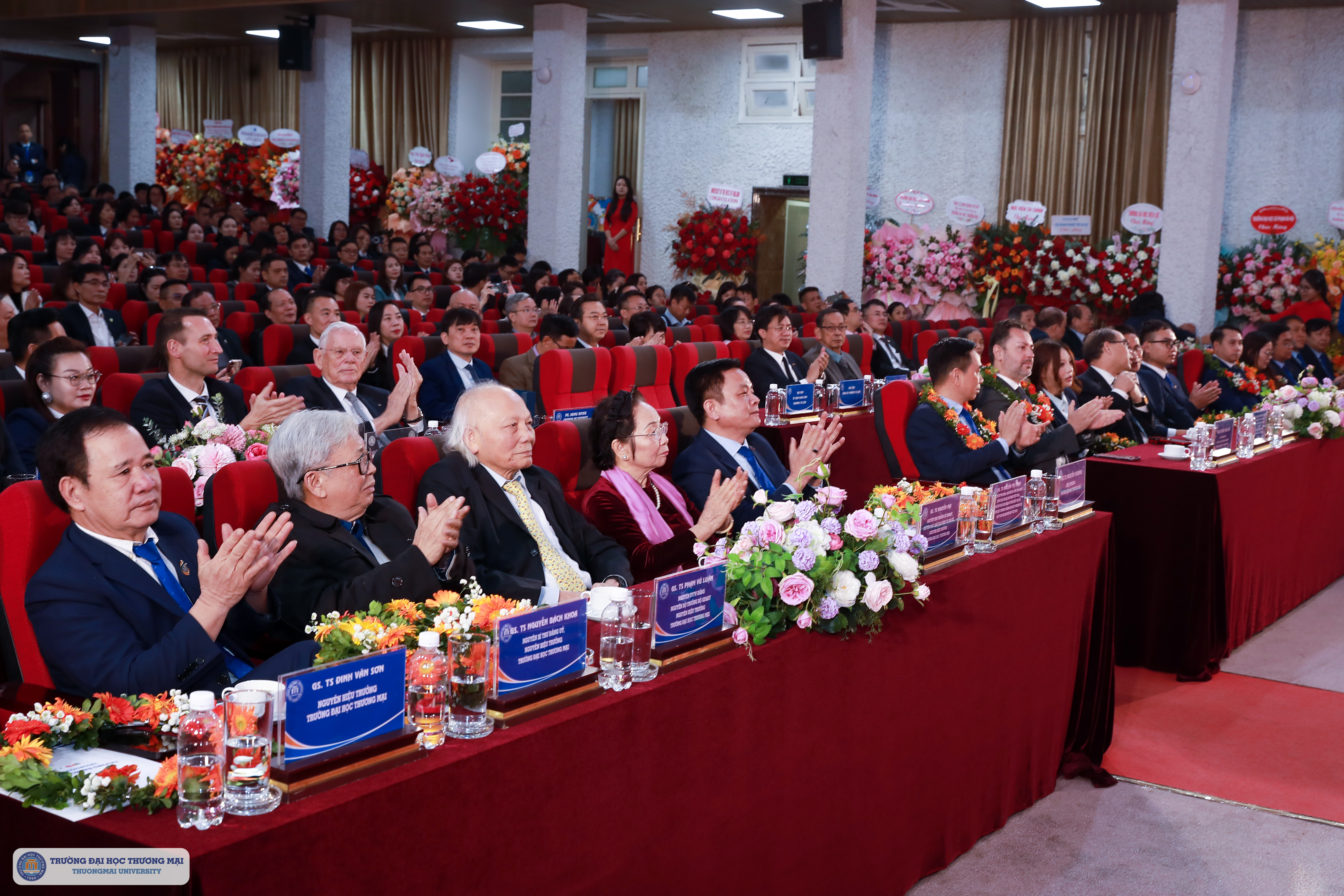 Buổi Lễ vinh dự tiếp đón các đồng chí là Lãnh đạo Nhà trường qua các thời kỳ: GS,TS. Nguyễn Mại - Nguyên Thứ trưởng Bộ Kế hoạch và Đầu tư, Nguyên Phó Chủ tịch UBND Thành phố Hà Nội, Nguyên Hiệu trưởng; GS,TS. Nguyễn Thị Doan - Nguyên Uỷ viên Trung ương Đảng, nguyên Phó Chủ tịch nước Cộng hoà xã hội chủ nghĩa Việt Nam, Nguyên Phó Chủ nhiệm Ủy ban kiểm tra Trung ương, Nguyên Hiệu trưởng Nhà trường, Chủ tịch Hội khuyến học Việt Nam; GS,TS. Phạm Vũ Luận - Nguyên Uỷ viên Trung ương Đảng, Nguyên Bộ trưởng Bộ GD&ĐT, Nguyên Hiệu trưởng; GS,TS. Nguyễn Bách Khoa - Nguyên Bí thư Đảng uỷ, Nguyên Hiệu trưởng; GS,TS. Đinh Văn Sơn - Nguyên Hiệu trưởng, Tổng Biên tập Tạp chí Khoa học Thương mại; PGS,TS. Tạ Văn Hài - Nguyên Phó Hiệu trưởng; Thầy Nguyễn Thiện Đạt - Nguyên Bí thư Đảng uỷ, Nguyên Phó Hiệu trưởng; TS. Nguyễn Thị Xuân Thảo - Nguyên Bí thư Đảng uỷ, Nguyên Phó Hiệu trưởng, Chủ tịch Hội Cựu giáo chức Trường; PGS,TS. Trần Thị Dung - Nguyên Phó Hiệu trưởng; PGS,TS. Bùi Xuân Nhàn - Nguyên Chủ tịch Hội đồng trường, nguyên Phó Hiệu trưởng; PGS,TS. Đỗ Minh Thành - Nguyên Bí thư Đảng uỷ, nguyên Phó Hiệu trưởng; PGS,TS. Nguyễn Hoàng Long - Nguyên Phó Hiệu trưởng; PGS,TS. Nguyễn Thị Bích Loan - Nguyên Phó Hiệu trưởng.
