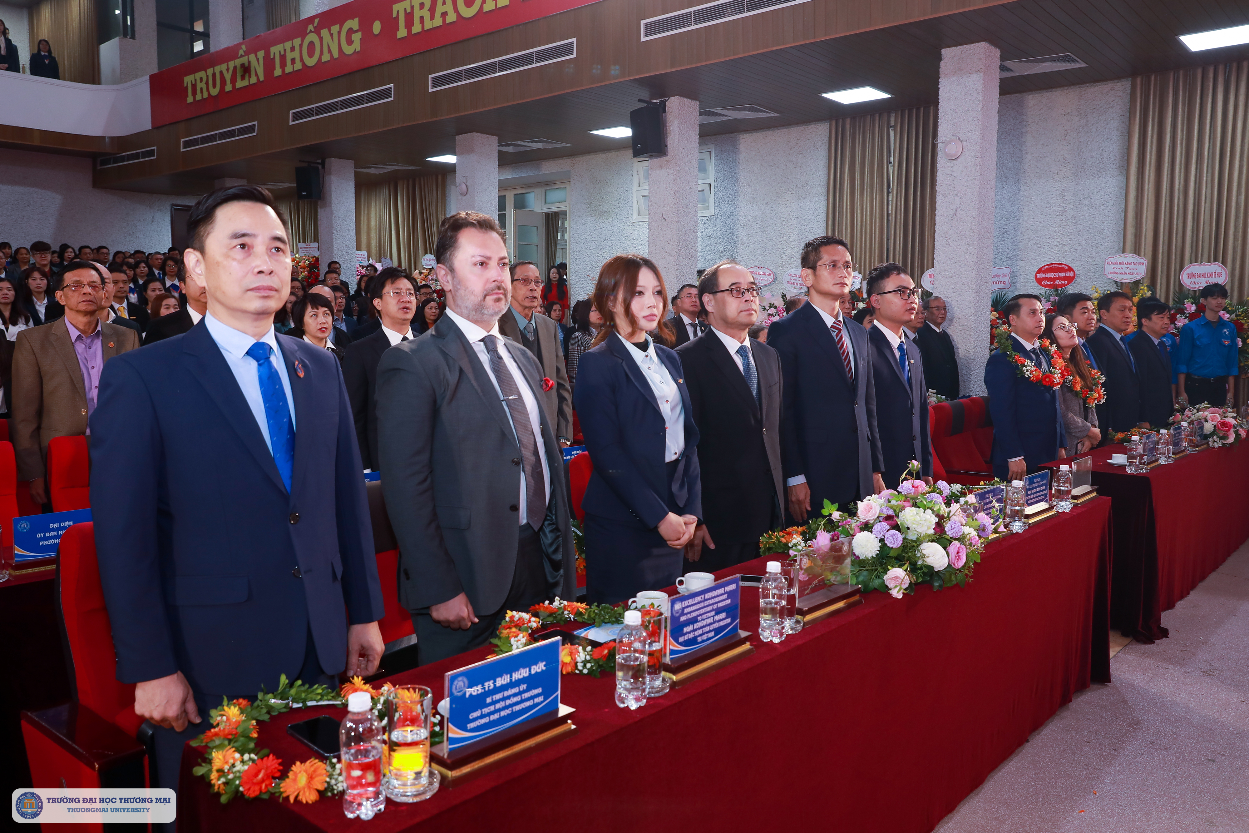 Tham dự buổi Lễ, về phía Trường Đại học Thương mại có PGS,TS. Bùi Hữu Đức - Bí thư Đảng ủy, Chủ tịch Hội đồng trường; PGS,TS. Nguyễn Hoàng – Phó Bí thư Đảng ủy, Hiệu trưởng Nhà trường; GS,TS. Nguyễn Hoàng Việt – Phó Bí thư Đảng ủy, Phó Hiệu trưởng; PGS,TS. Hà Văn Sự - Phó Hiệu trưởng; PGS,TS. Nguyễn Đức Nhuận - Phó Hiệu trưởng; PGS,TS. Nguyễn Viết Thái - Chủ tịch Công đoàn trường; TS. Phan Thu Trang - Bí thư Đoàn Thanh niên trường; ThS. Nguyễn Bình Minh - Chủ tịch Hội Cựu chiến binh trường; Lãnh đạo các đơn vị thuộc Trường; các thế hệ cán bộ, giảng viên, người học Nhà trường.