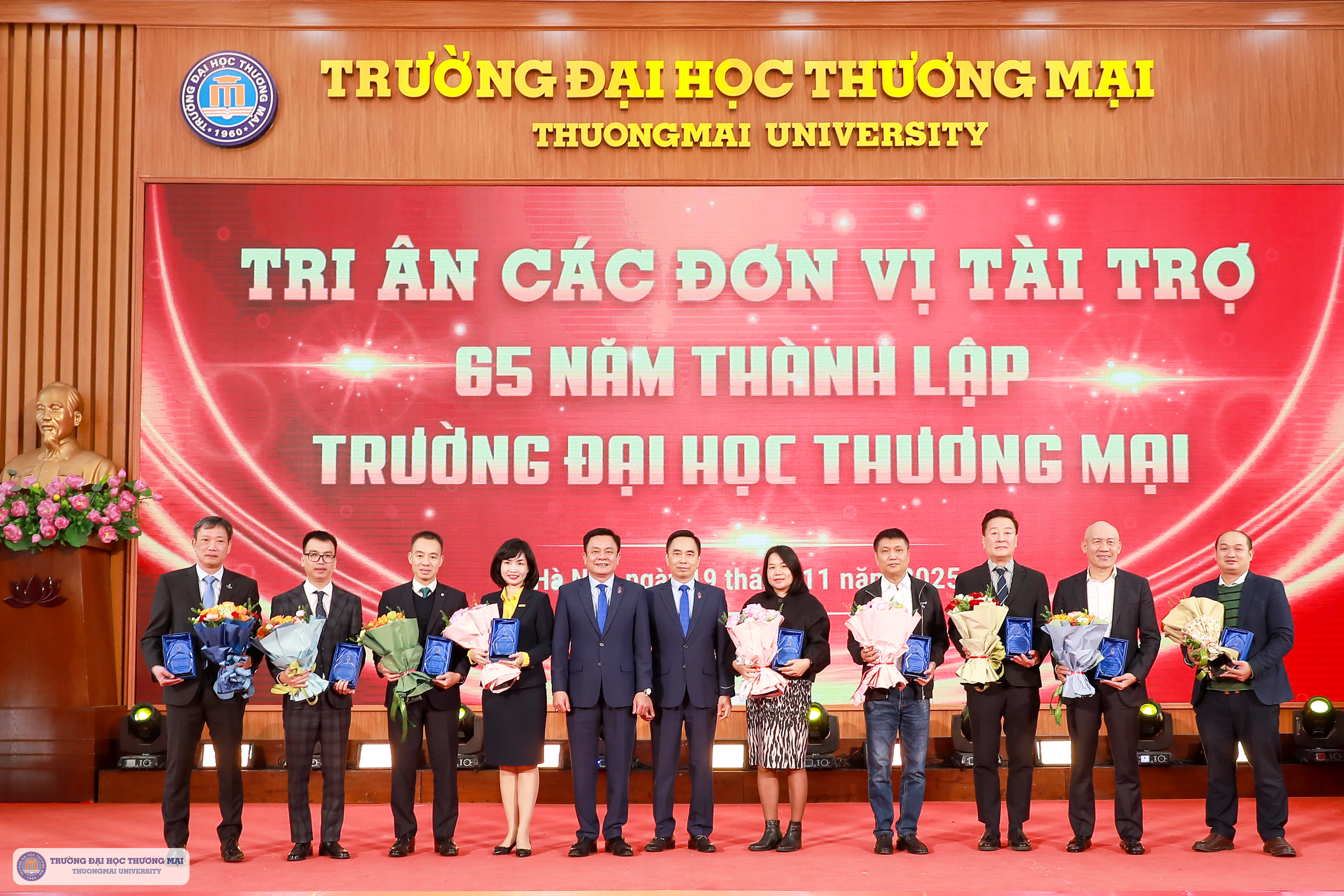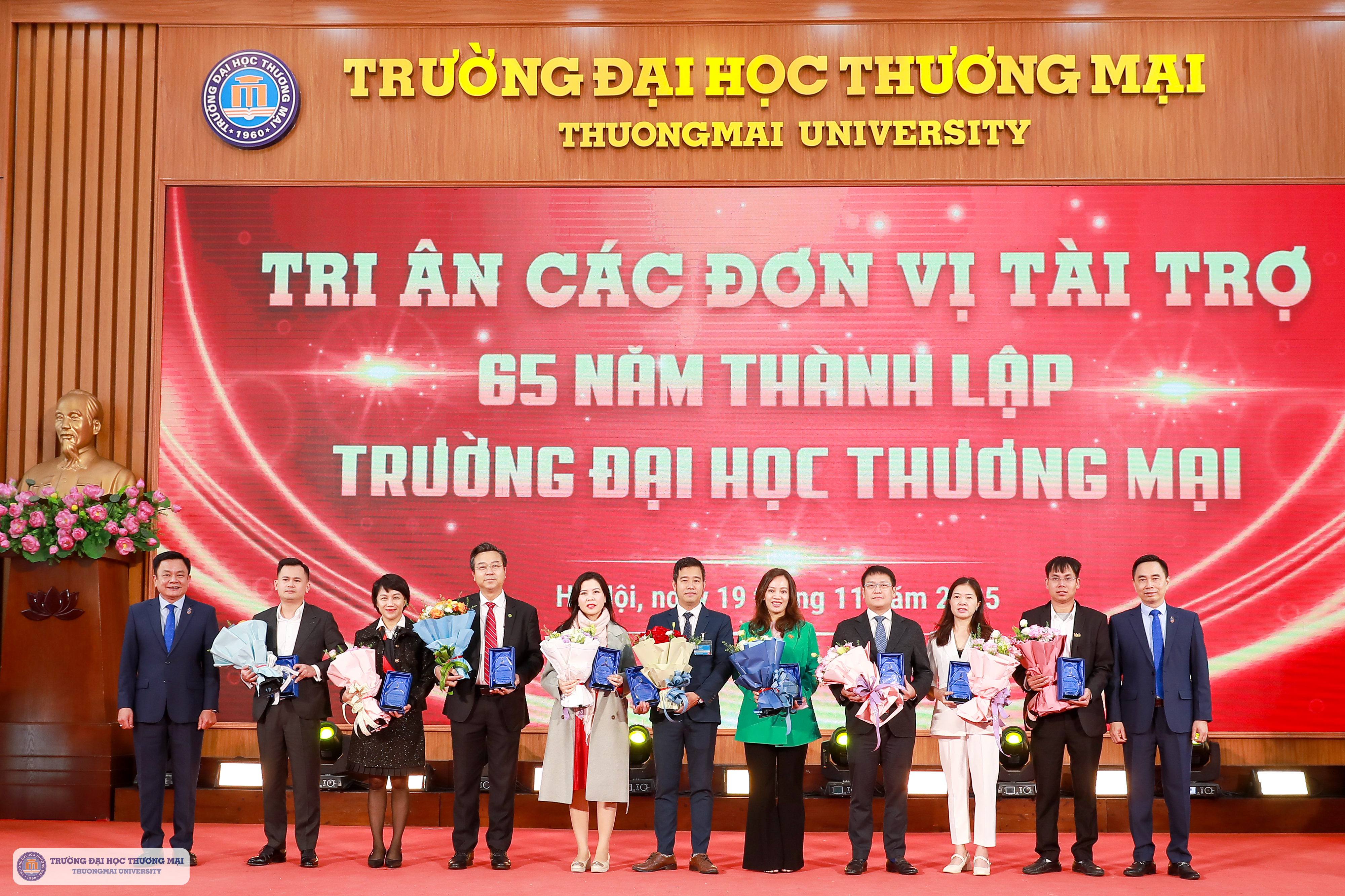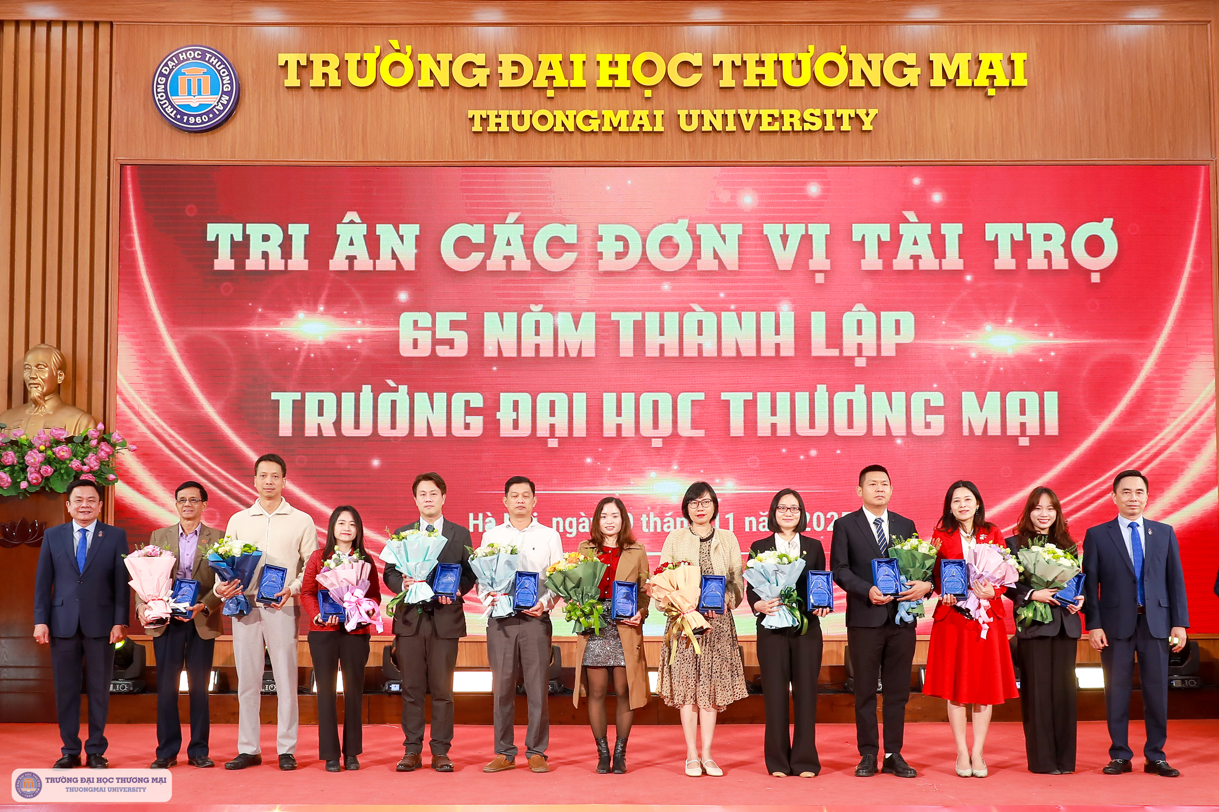 Cũng trong buổi Lễ, đại diện Lãnh đạo Nhà trường đã trao những bó hoa tri ân thay lời cảm ơn sâu sắc tới các đơn vị, doanh nghiệp đối tác đã luôn đồng hành, sẻ chia và hỗ trợ quý báu trong suốt quá trình hình thành phát triển của Trường Đại học Thương mại.