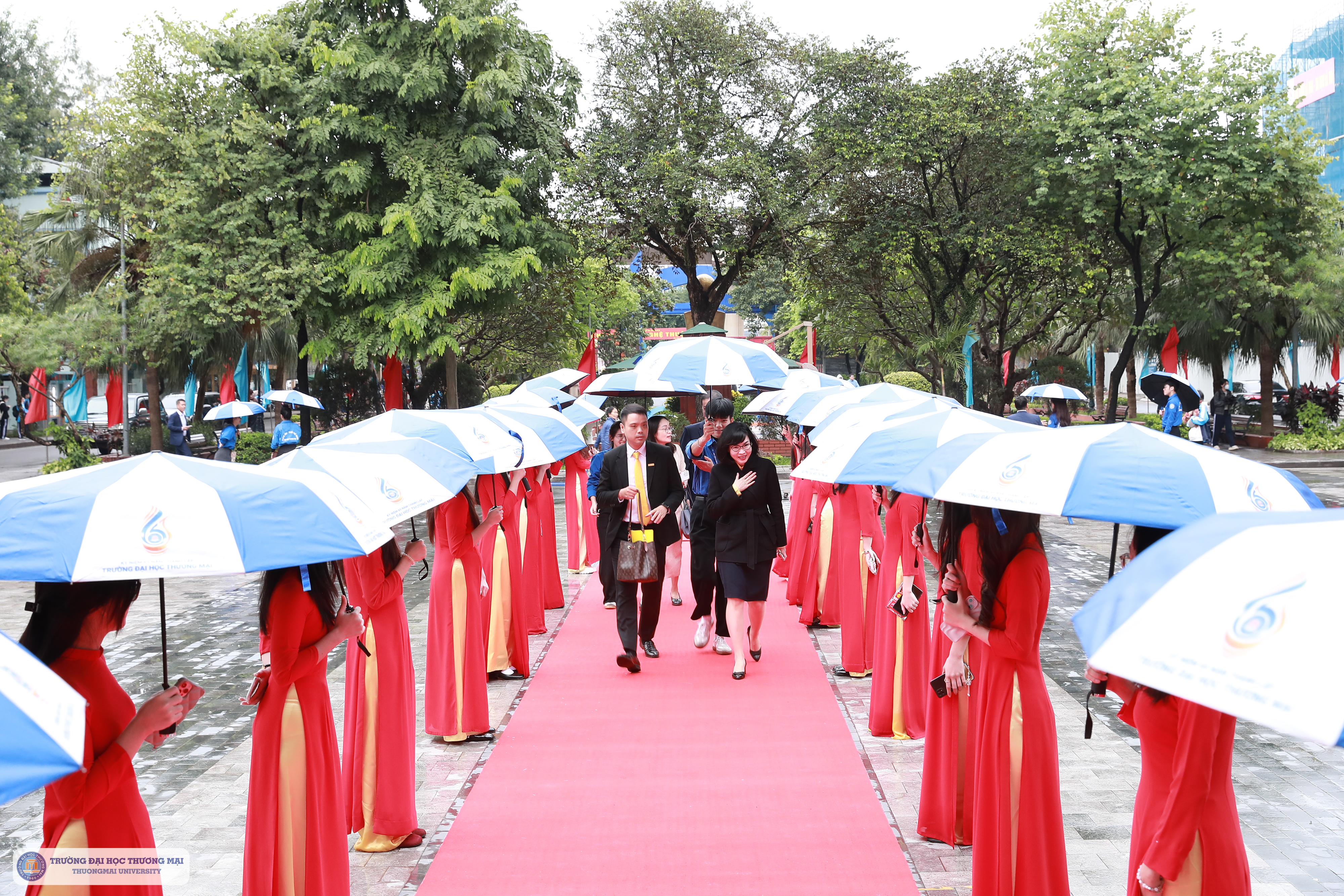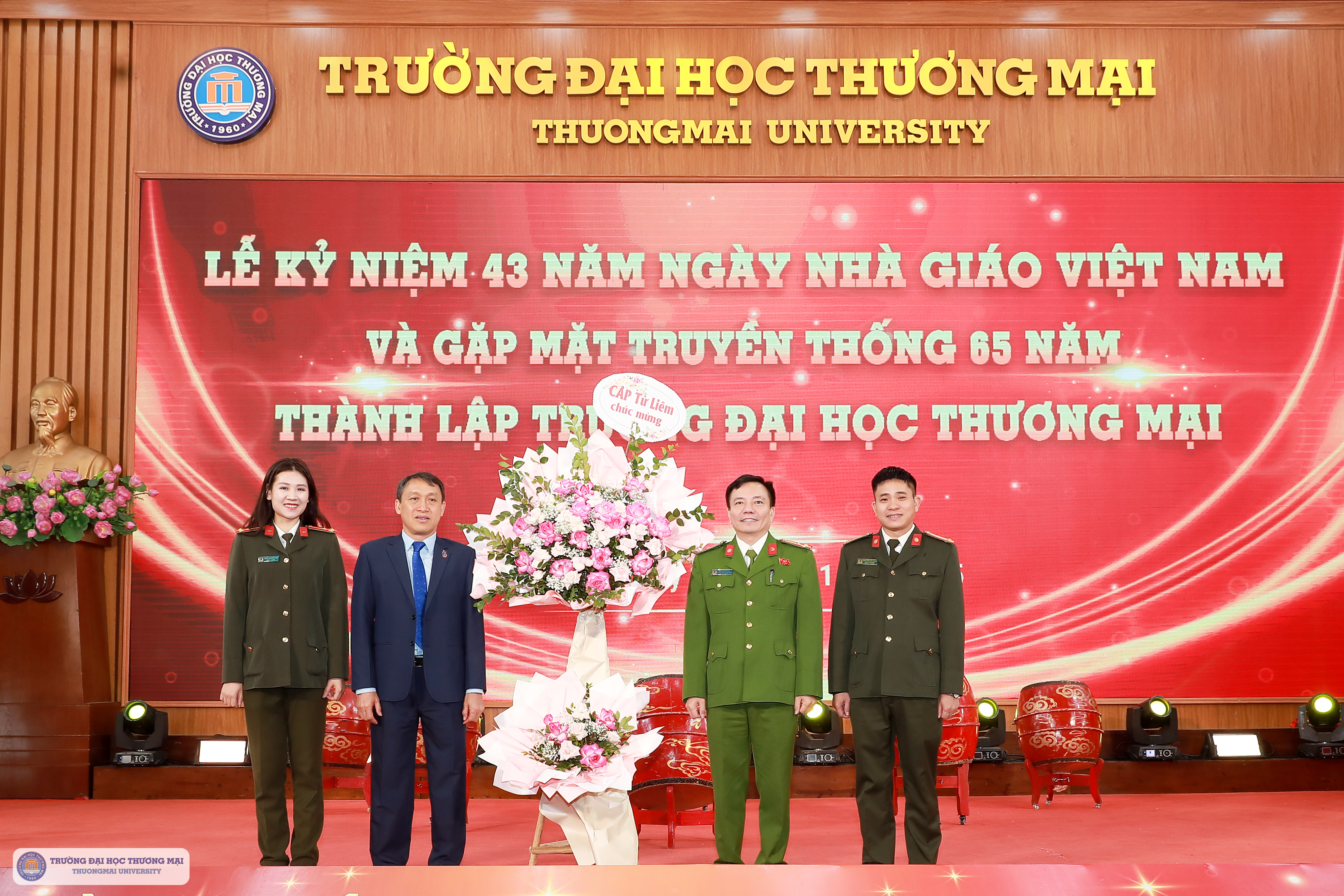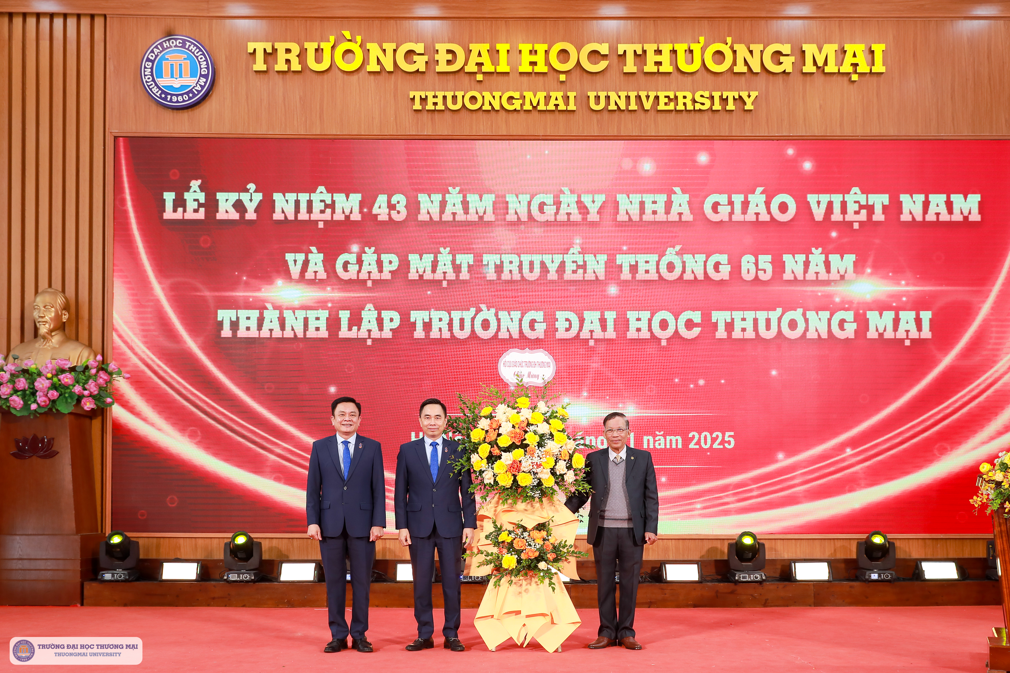 Nhà trường cũng vinh dự nhận được những lẵng hoa chúc mừng từ Đ/c Lê Hải Hoà – Chủ tịch UBND tỉnh Cao Bằng, cựu sinh viên Trường Đại học Thương mại; đ/c Nguyễn Đức Trung – Phó Bí thư Thành uỷ, Chủ tịch UBND TP. Hà Nội, cựu sinh viên Trường. Bên cạnh đó, Trường Đại học Thương mại cũng vinh dự nhận được nhiều lẵng hoa chúc mừng từ các cơ quan, tổ chức, doanh nghiệp, các trường đại học đối tsc, đại diện cựu giáo chức và người học. Những lẵng hoa tươi thắm này là minh chứng cho sự quan tâm, ghi nhận và đánh giá cao đối với thành tích, truyền thống vẻ vang và những đóng góp của Nhà trường.