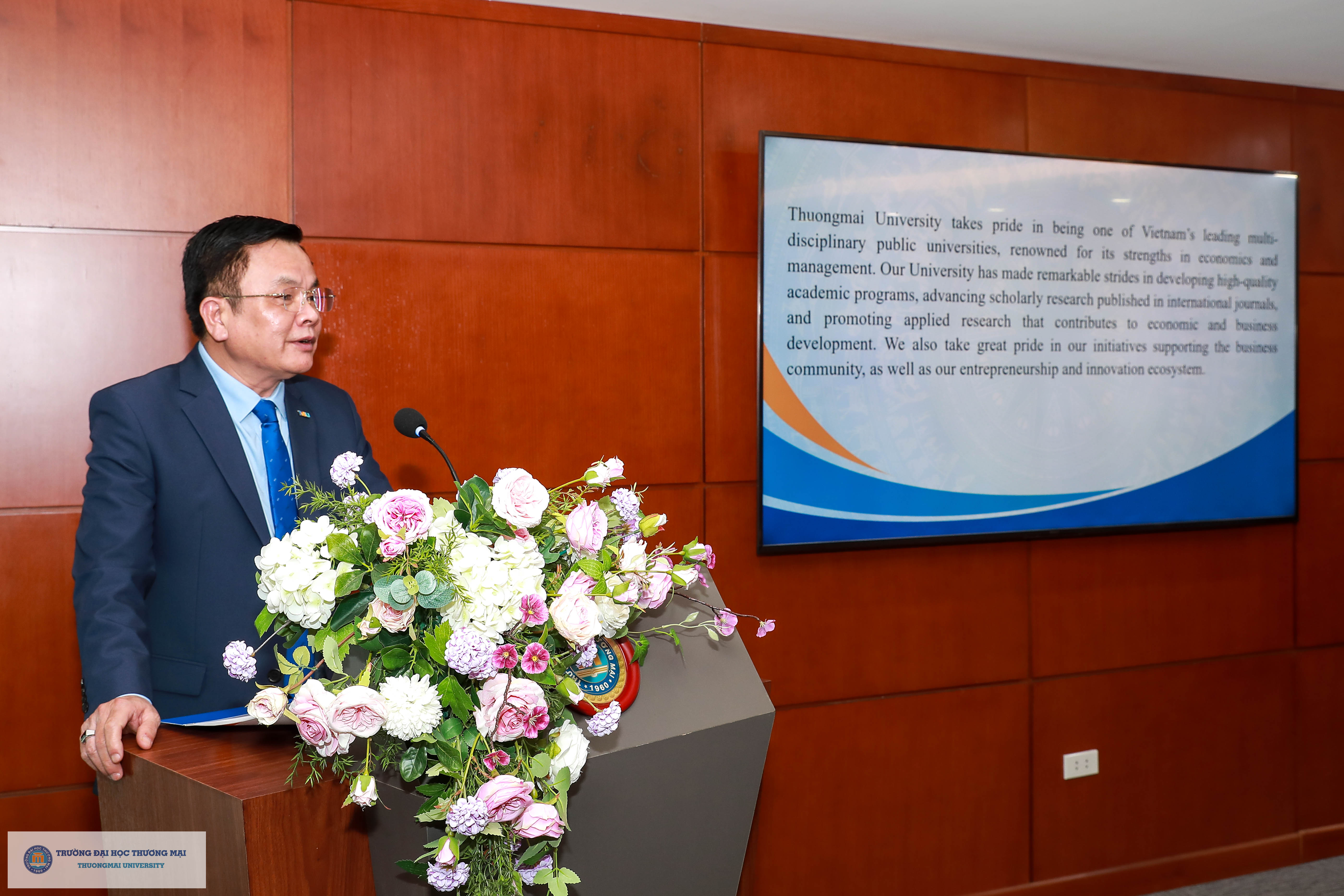 Tham dự buổi Lễ, về phía Trường Đại học Thương mại có sự hiện diện của PGS,TS. Nguyễn Hoàng - Hiệu trưởng; PGS,TS. Hà Văn Sự - Phó Hiệu trưởng; PGS,TS. Nguyễn Thị Minh Nhàn - Trưởng phòng Quản lý Khoa học và Đối ngoại và TS. Đinh Thị Phương Anh – Phó Trưởng phòng Quản lý Khoa học và Đối ngoại.