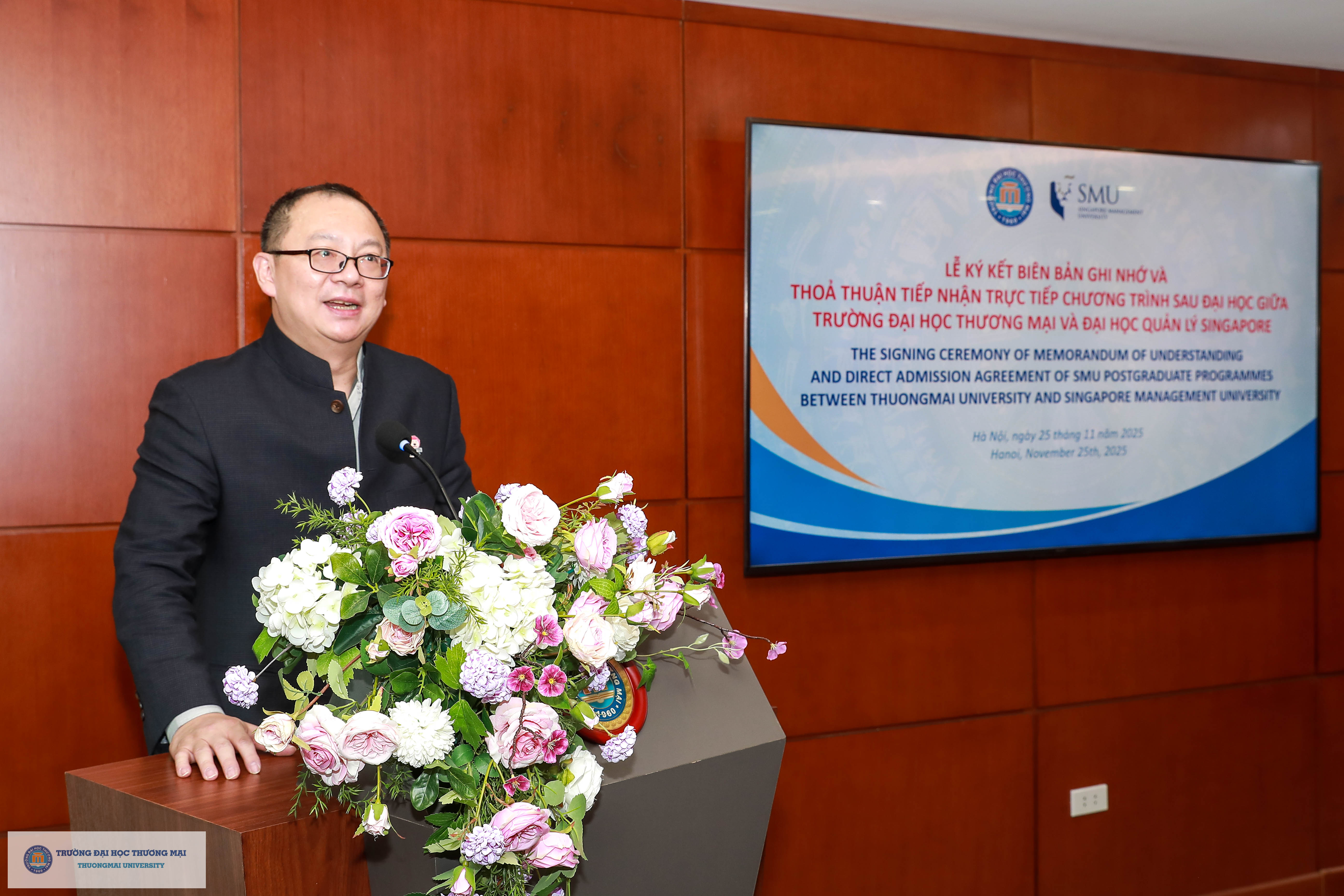 Về phía Đại học Quản lý Singapore có sự hiện diện của PGS. Themin Suwardy - Phó Hiệu trưởng chuyên môn, ông Vũ Việt Anh – Trưởng Văn phòng Đại diện SMU tại Việt Nam, bà Trương Huyền Trang – Quản lý cấp cao, Văn phòng Đại diện SMU tại Việt Nam.